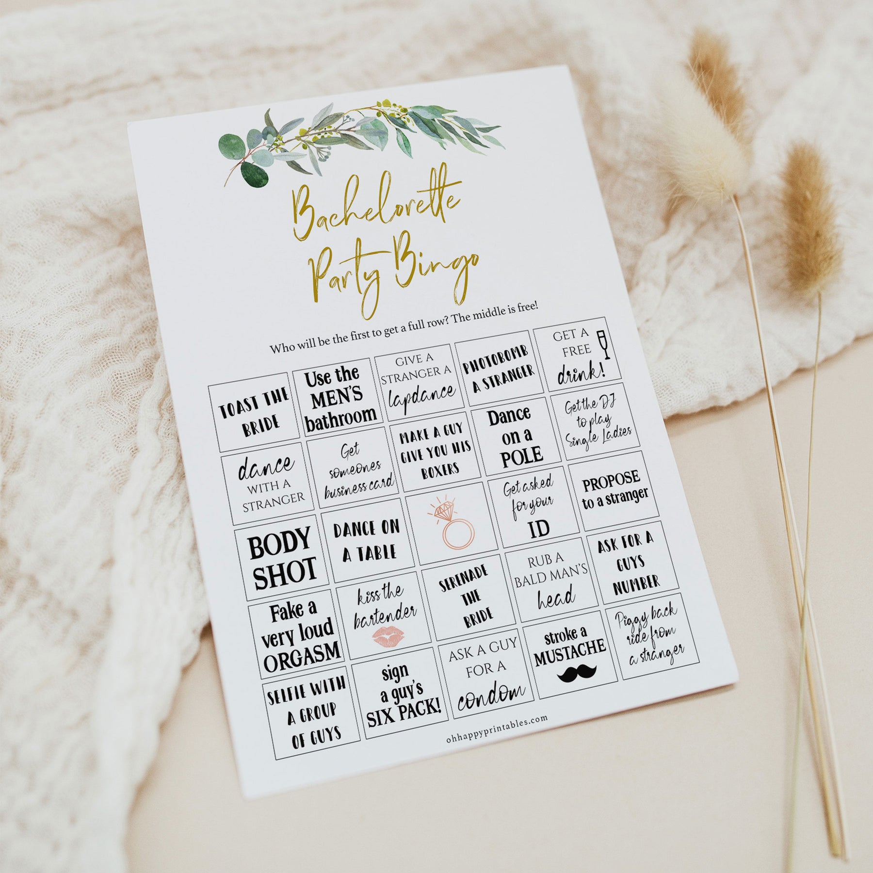 Bachelorette Party Bingo - Eucalyptus Leaf