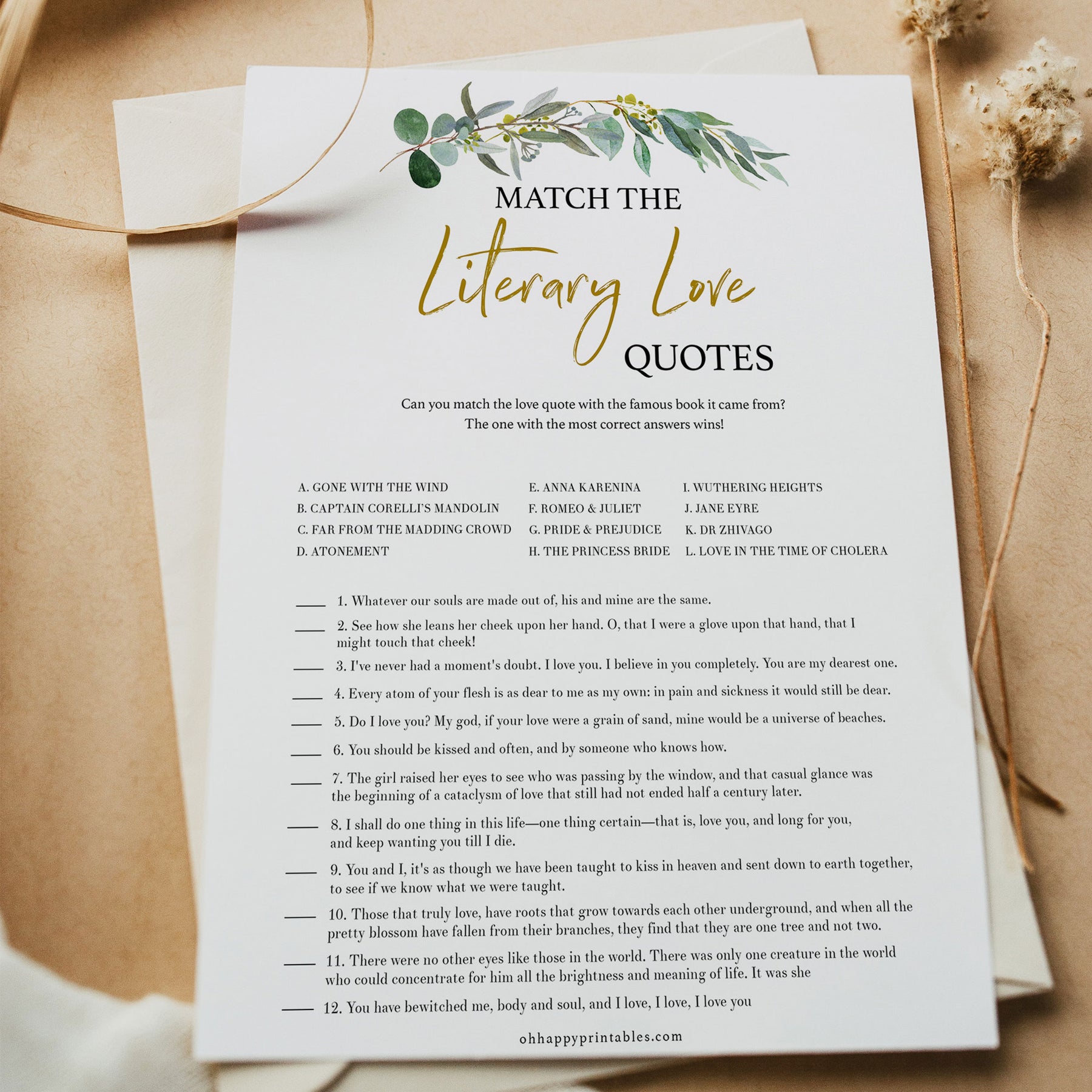 Do you prefer the charming Mr Darcy or the rugged Heathcliffe? Test your literary romance knowledge with this unique bridal shower game. Featuring love quotes from some of the greatest novels of all time, you might even find some inspiration for your wedding day vows!