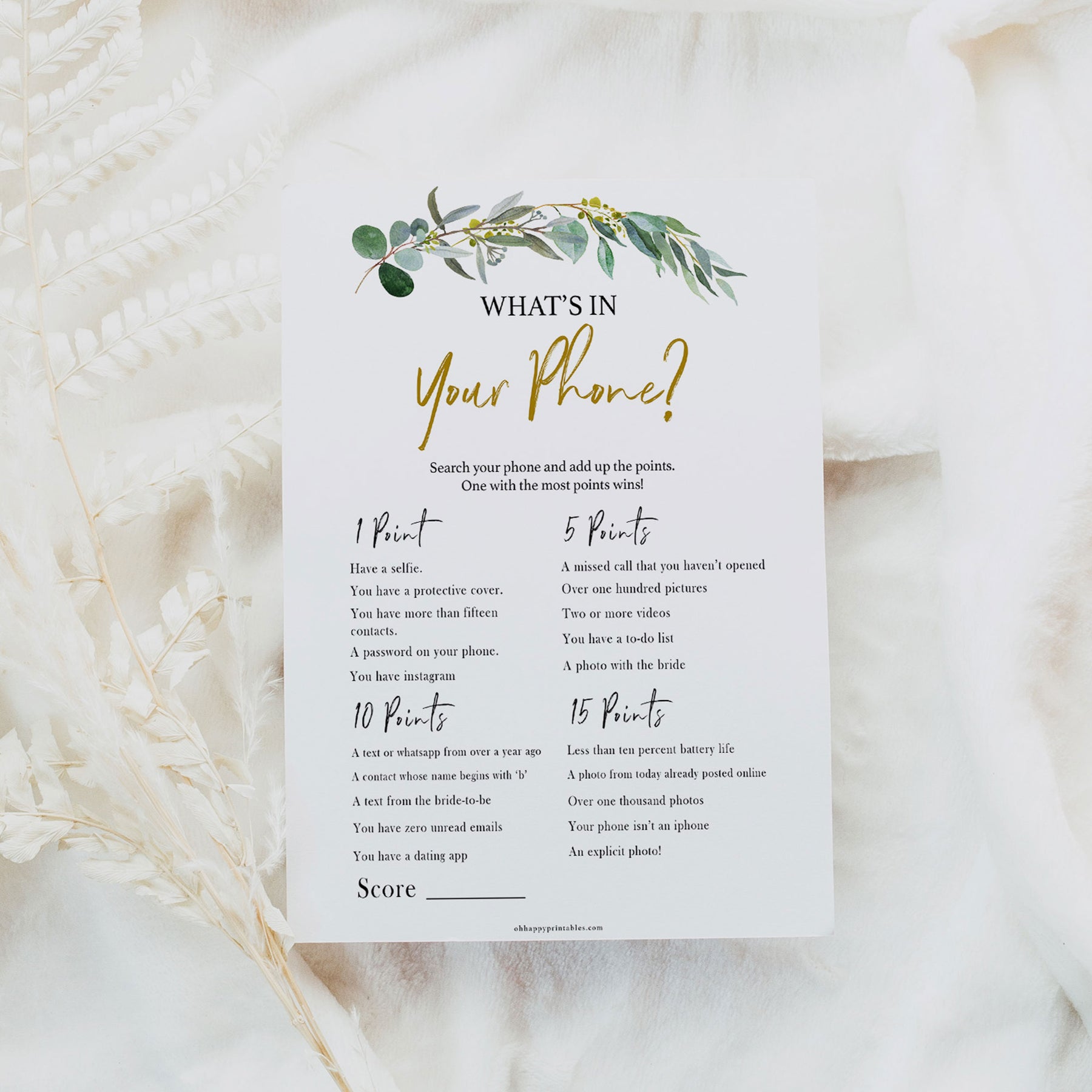 A great party game to keep everyone entertained, you aren't allowed to delete anything incriminating off your phone beforehand! Lots of fun with large groups, this Bridal Shower game will have you all laughing in no time.