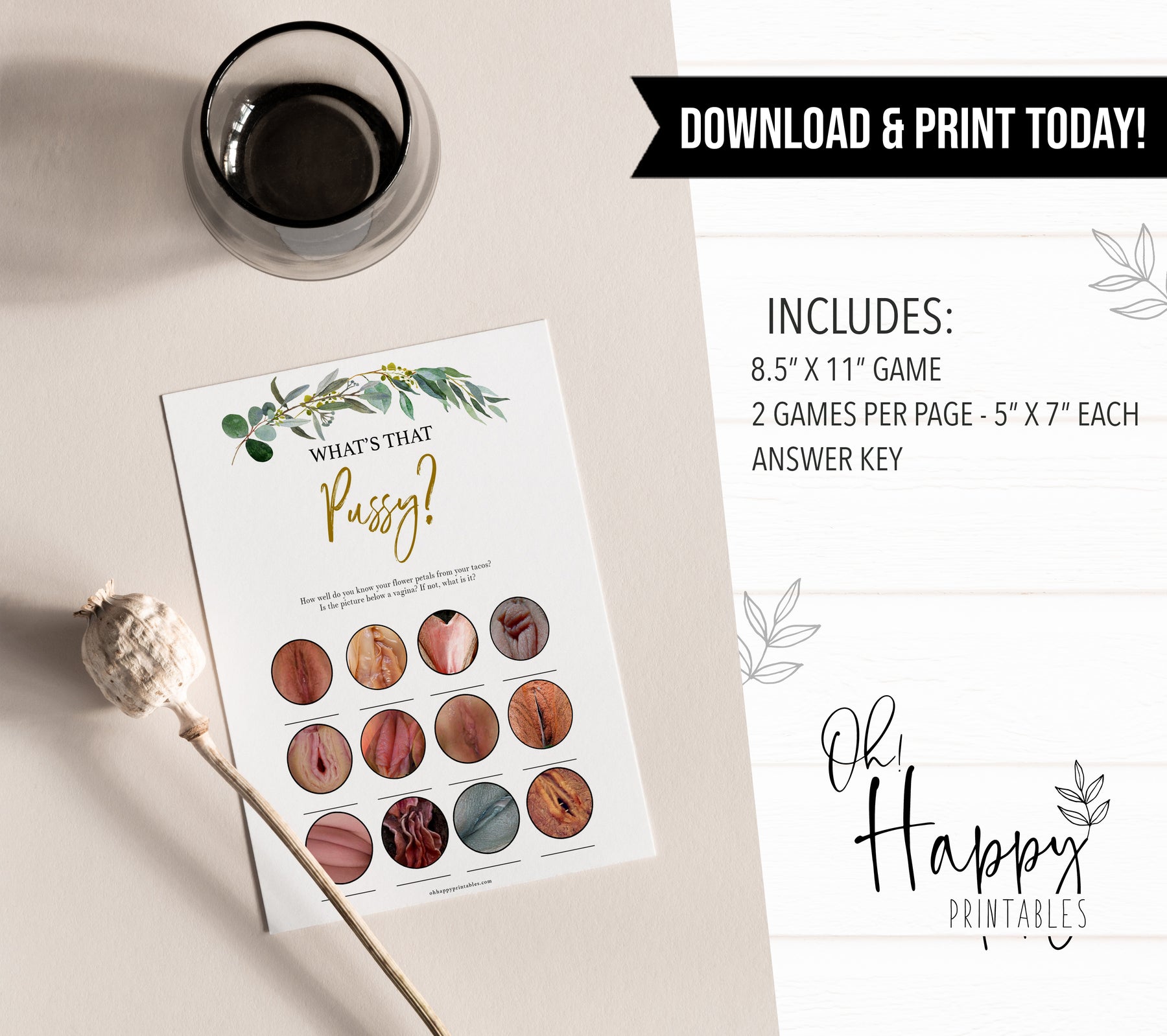 Definitely a game for the adults! As we all know, vaginas come in all shapes and sizes! This naughty bachelorette game is a great way to get everyone involved, as you try and guess which images are the real vaginas.