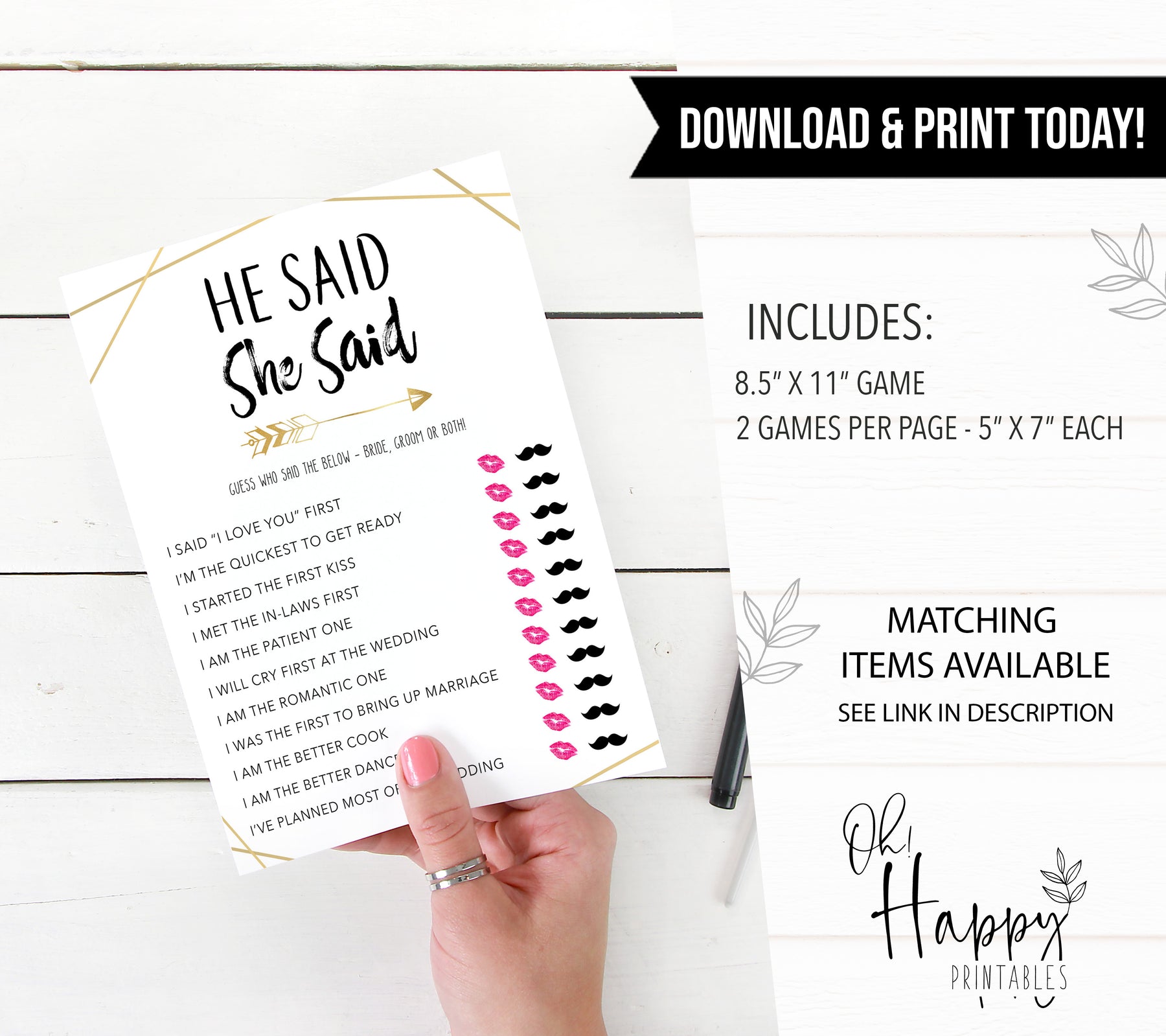 In this classic bridal shower game, can you guess whether the bride or the groom said the statement? A fun game that's best played with friends of the couple.
