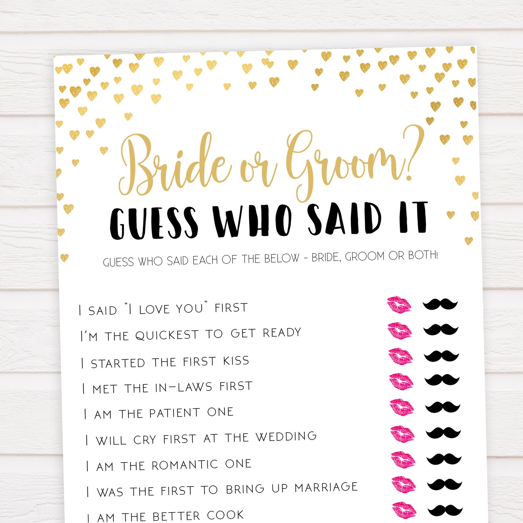 Gold hearts bridal shower games, he said she said, printable bridal games, gold bridal games, gold hearts bridal games, fun bridal games, top bridal games, best bridal games