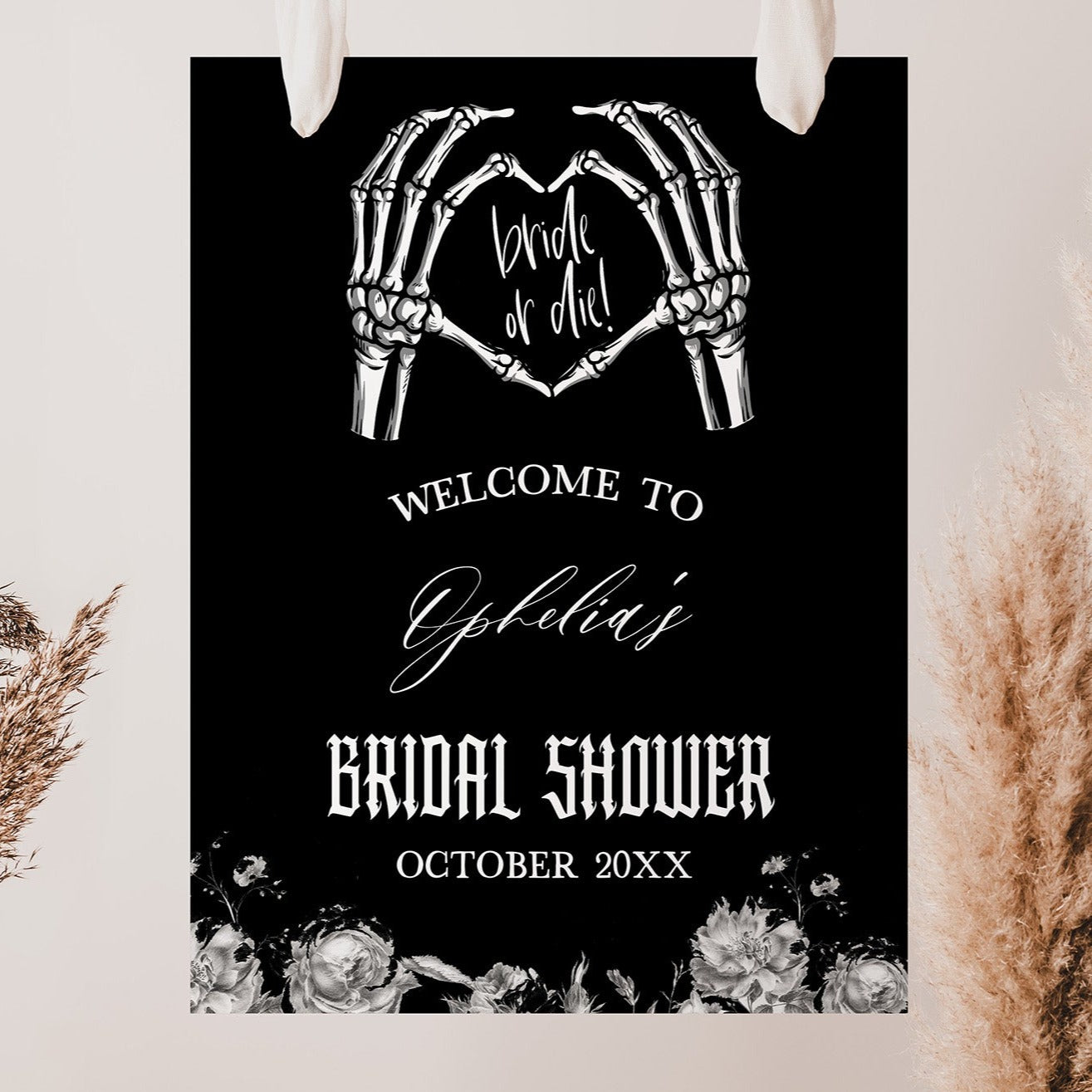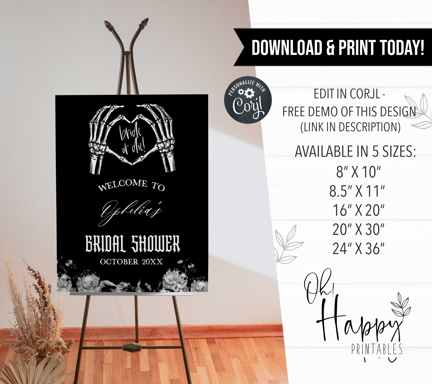 This gothic inspired bridal shower welcome sign adds the perfect finishing touch to your Bride or Die hen party. It's a fully editable template that can be printed at home, or at the print shop of your choice! Find all your hen party games, hen party decor and more in our store 💜
