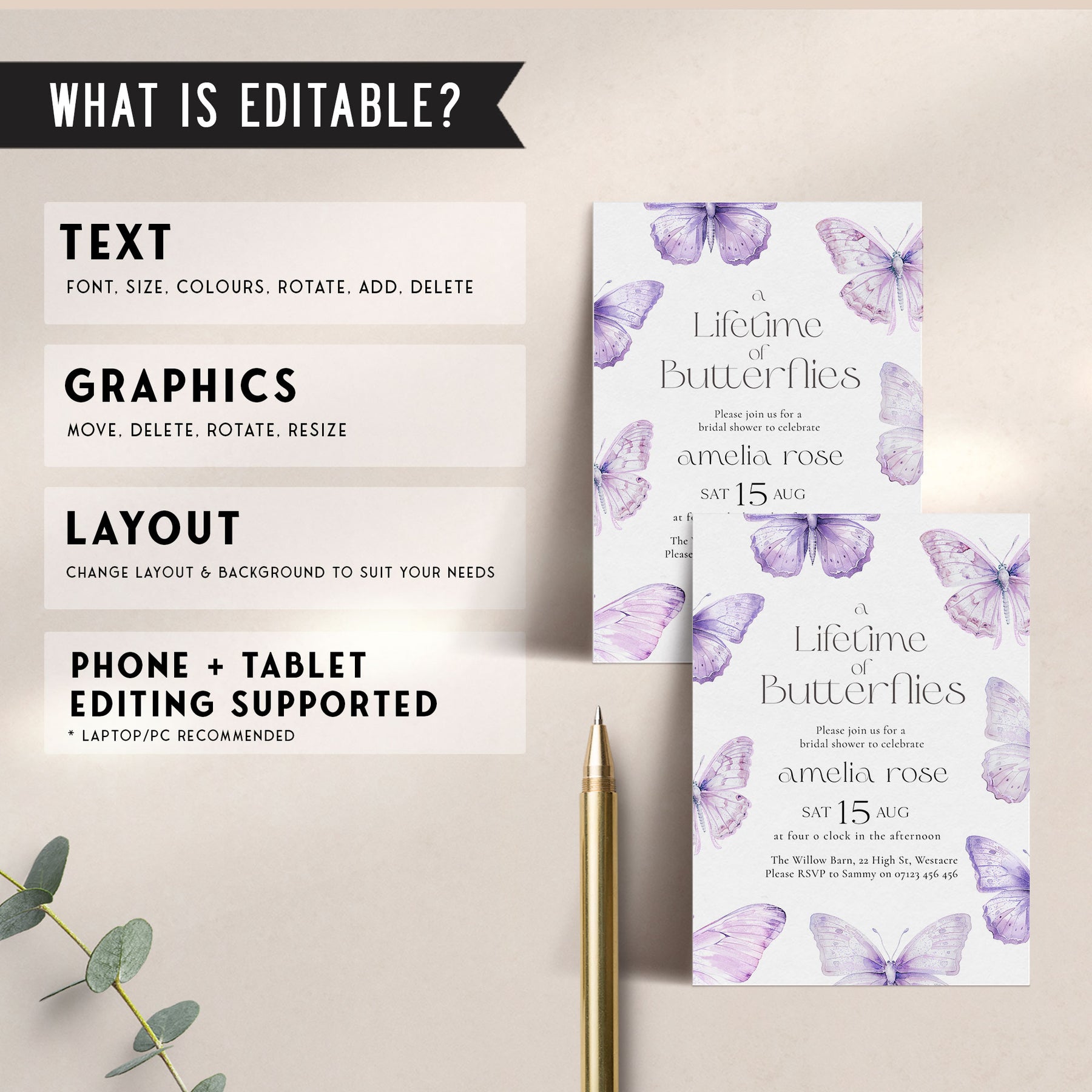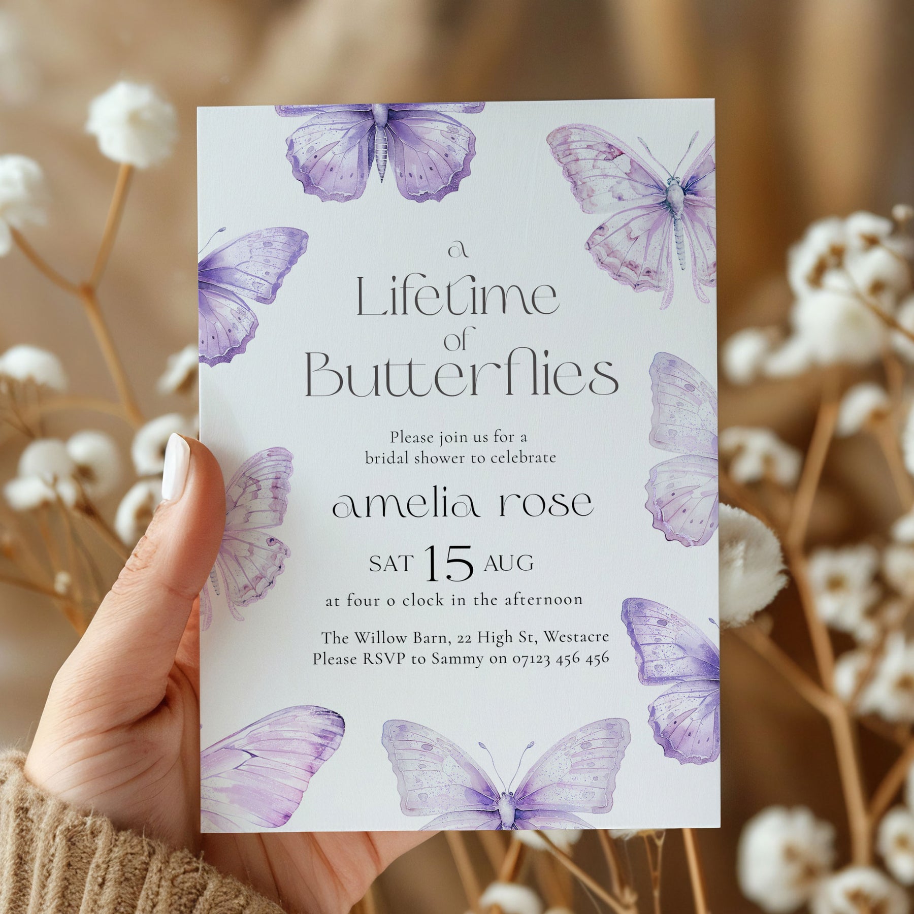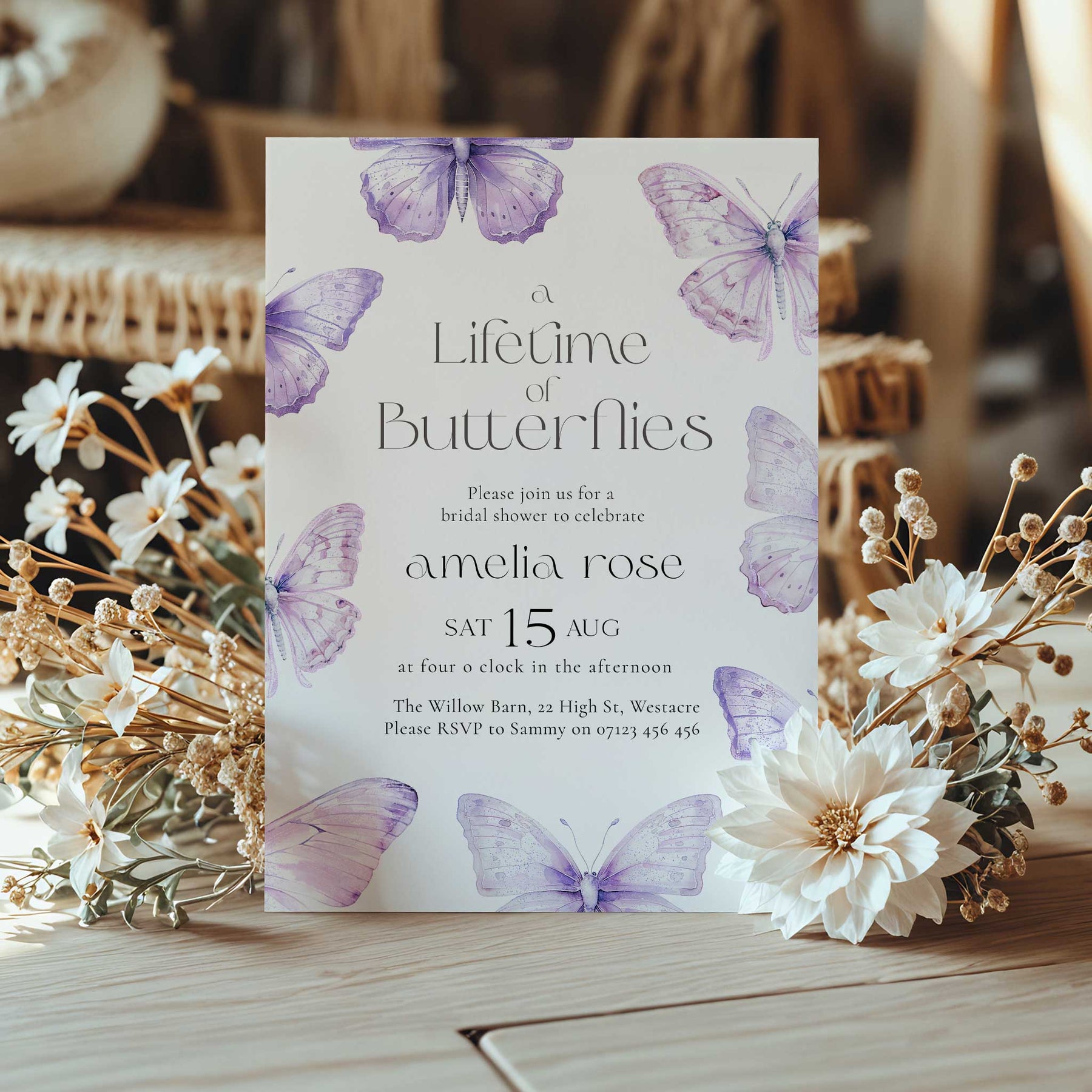 Celebrate your bridal shower with our 'A Lifetime Of Butterflies' bridal shower invite! Personalise and send today! It couldn't be easier.