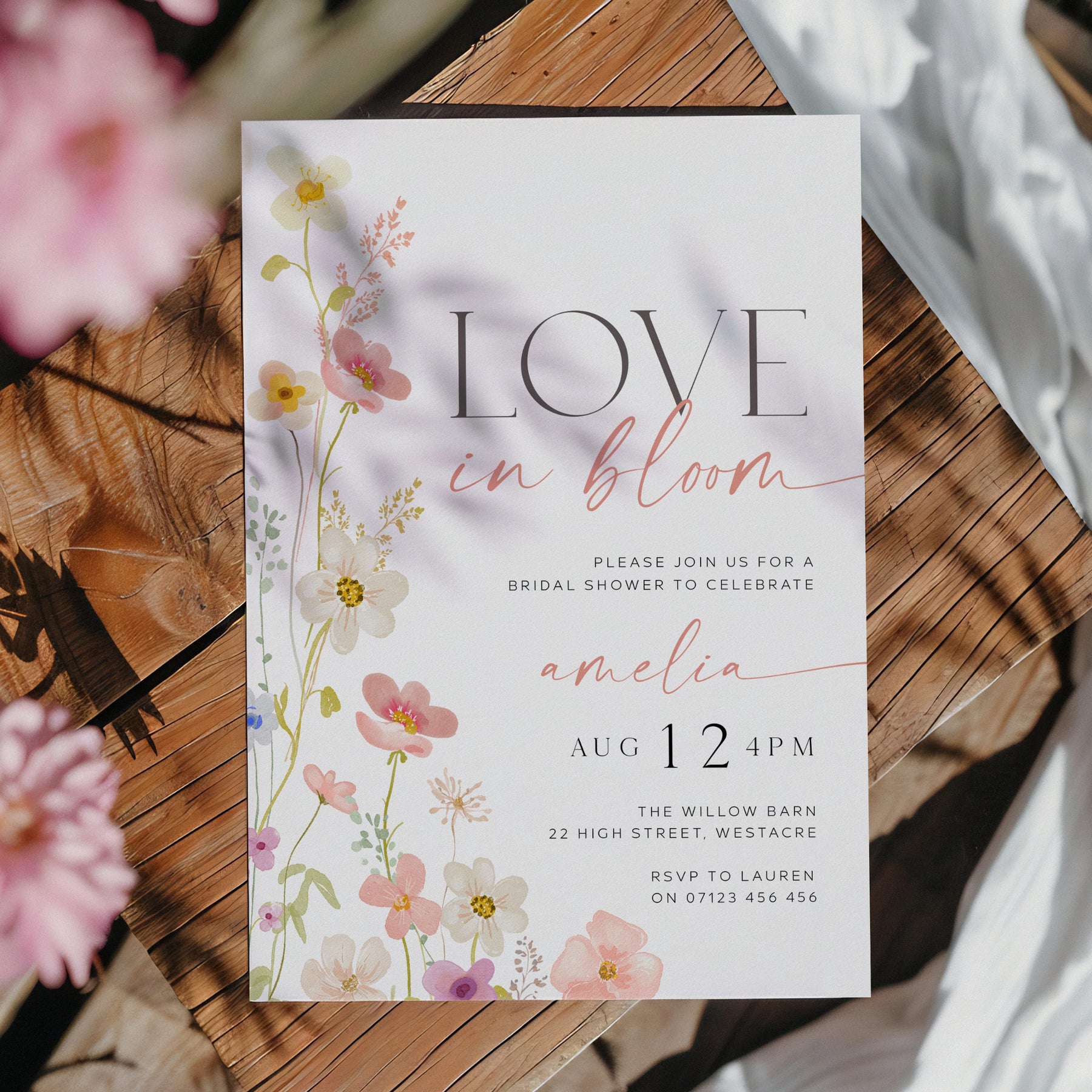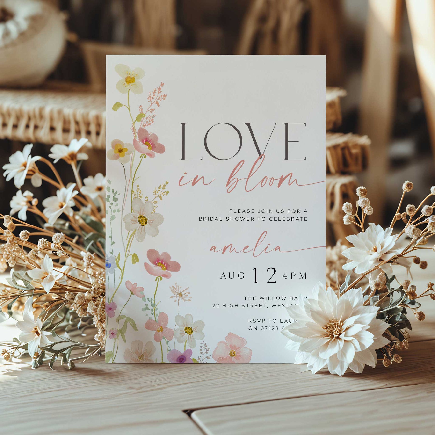 Celebrate your bridal shower with our 'Love In Bloom' bridal shower invite! Featuring a fresh floral design, this editable invitation sets the perfect tone for a your special day. Personalise and send today! It couldn't be easier.