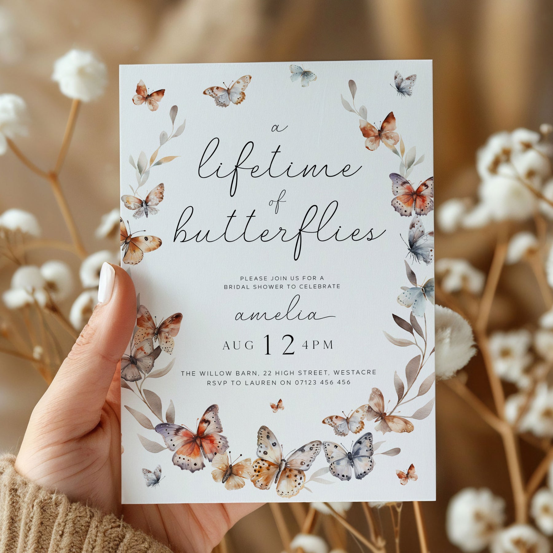 Celebrate your bridal shower with our 'A Lifetime Of Butterflies' bridal shower invite! Personalise and send today! It couldn't be easier.