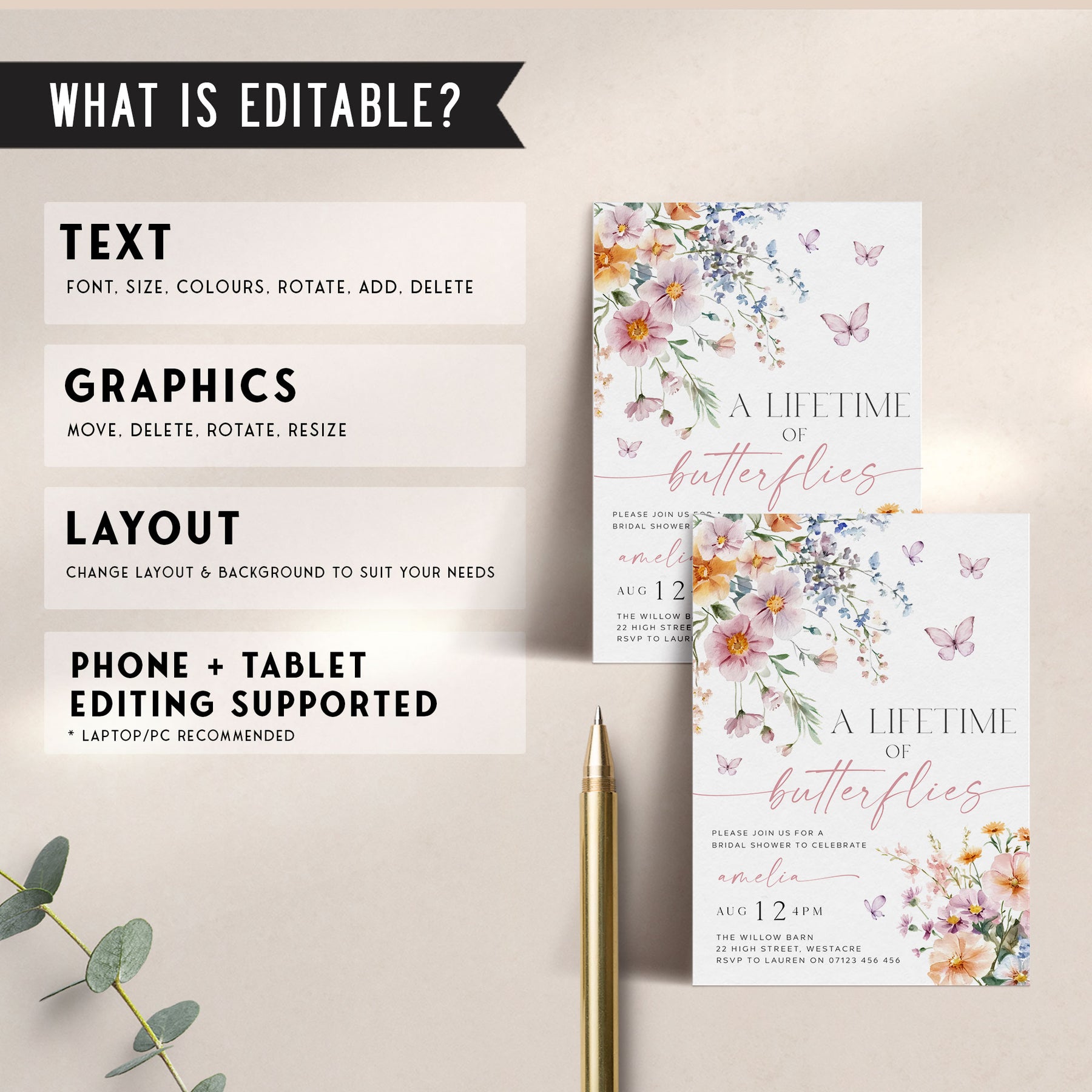 Celebrate your bridal shower with our 'A Lifetime Of Butterflies' bridal shower invite! Personalise and send today! It couldn't be easier.
