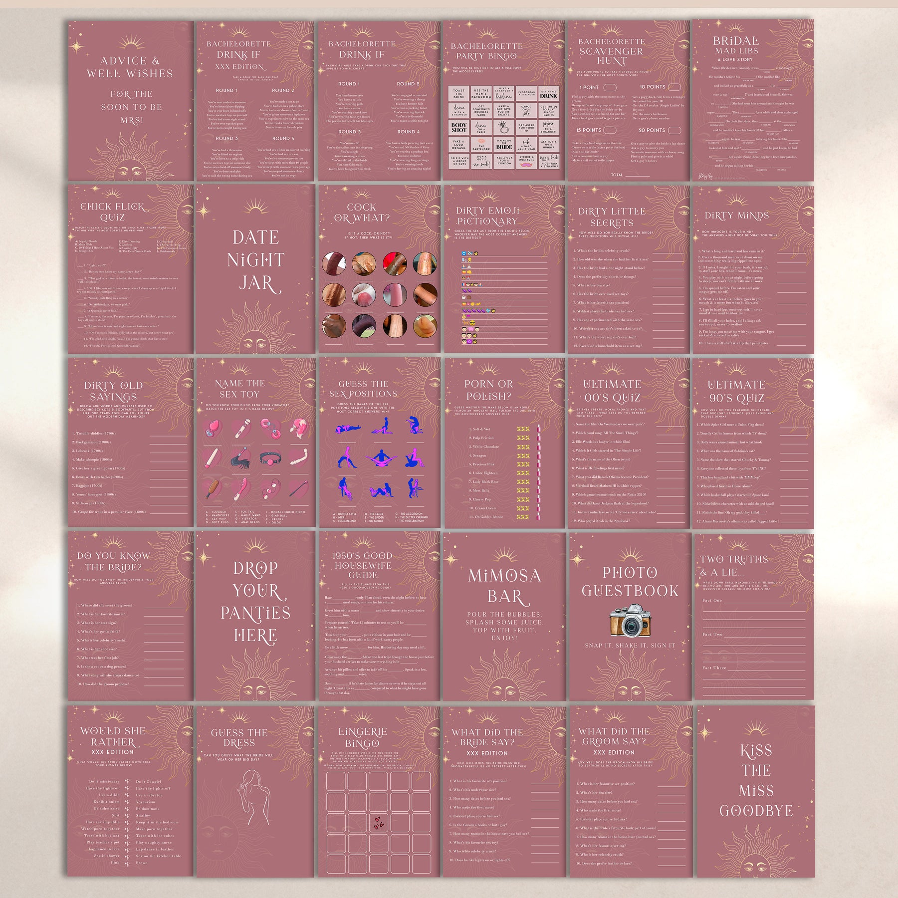 FEATURING 40 of the best selling, original bachelorette party games you'll ever find! Make it a bachelorette to remember with this ultimate bachelorette games bundle. Download instantly and print at home!