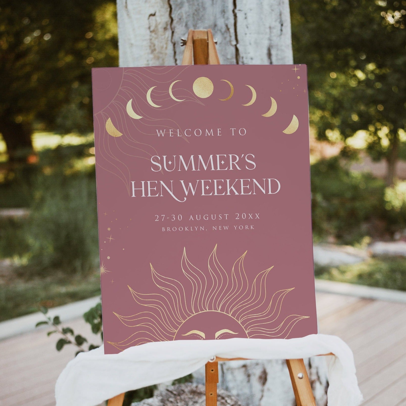 This bridal shower welcome sign adds the perfect finishing touch to your Celestial hen party weekend. It's a fully editable template that can be printed at home, or at the print shop of your choice! Find all your games, party decor and more in our store 💜
