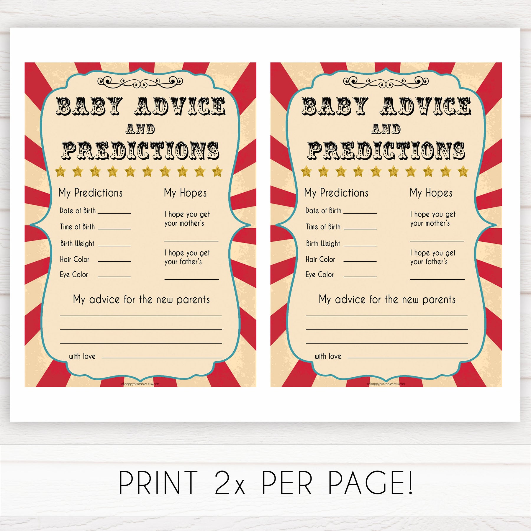 A gorgeous keepsake for the new parents, our Baby Advice & Predictions card is a cute addition to any baby shower. Fill it in with your predictions for the new baby, as well as words of advice and well wishes. Simply download and print as many as you need.