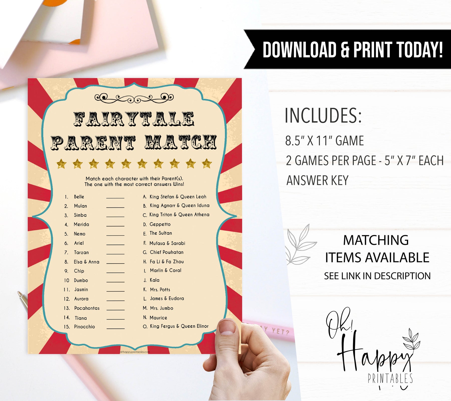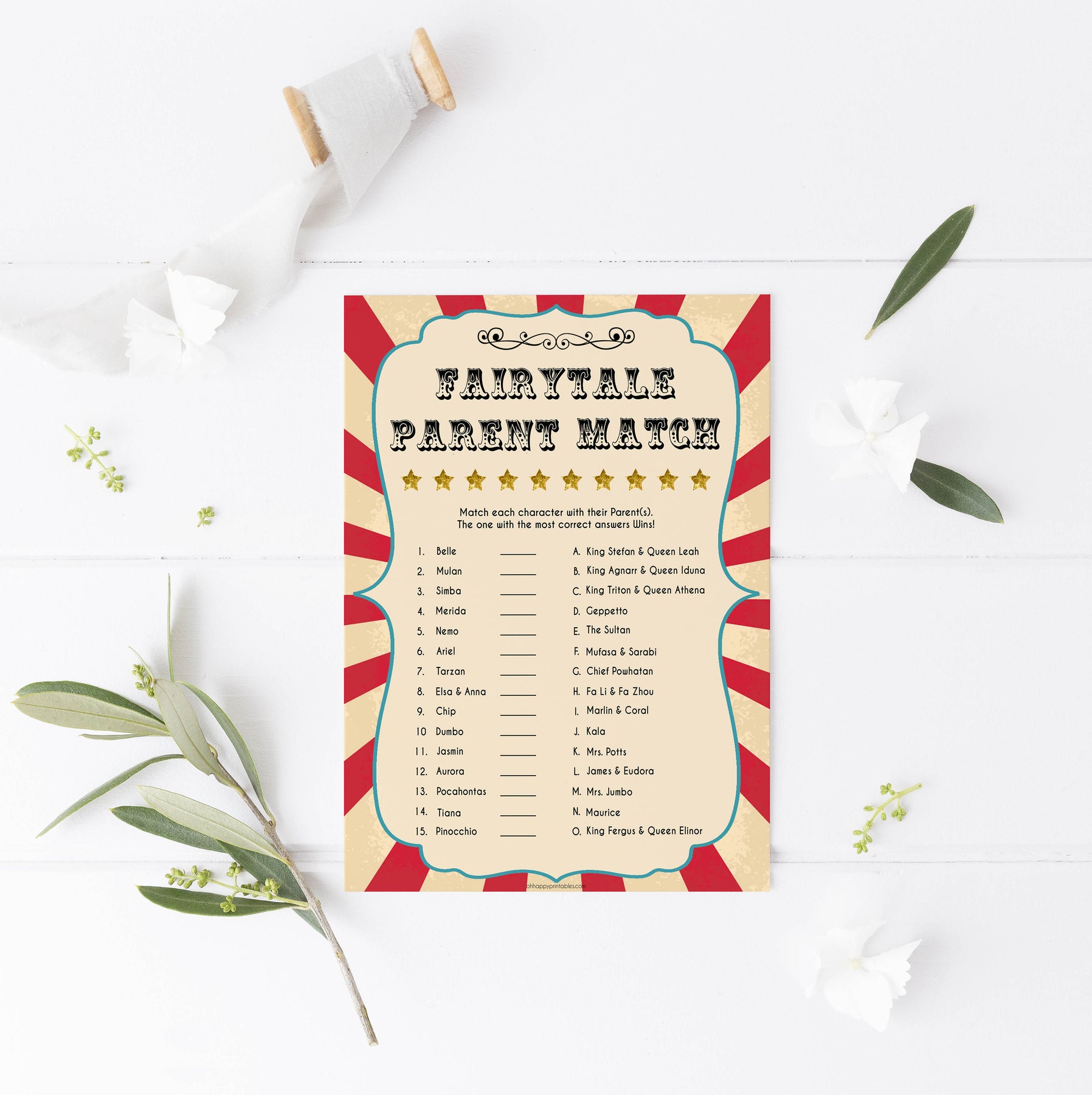 Get your friends to match the fairytale princesses to their parents. The person with the most matches wins. This is a fun one! All you need to do is download the game and print at home.