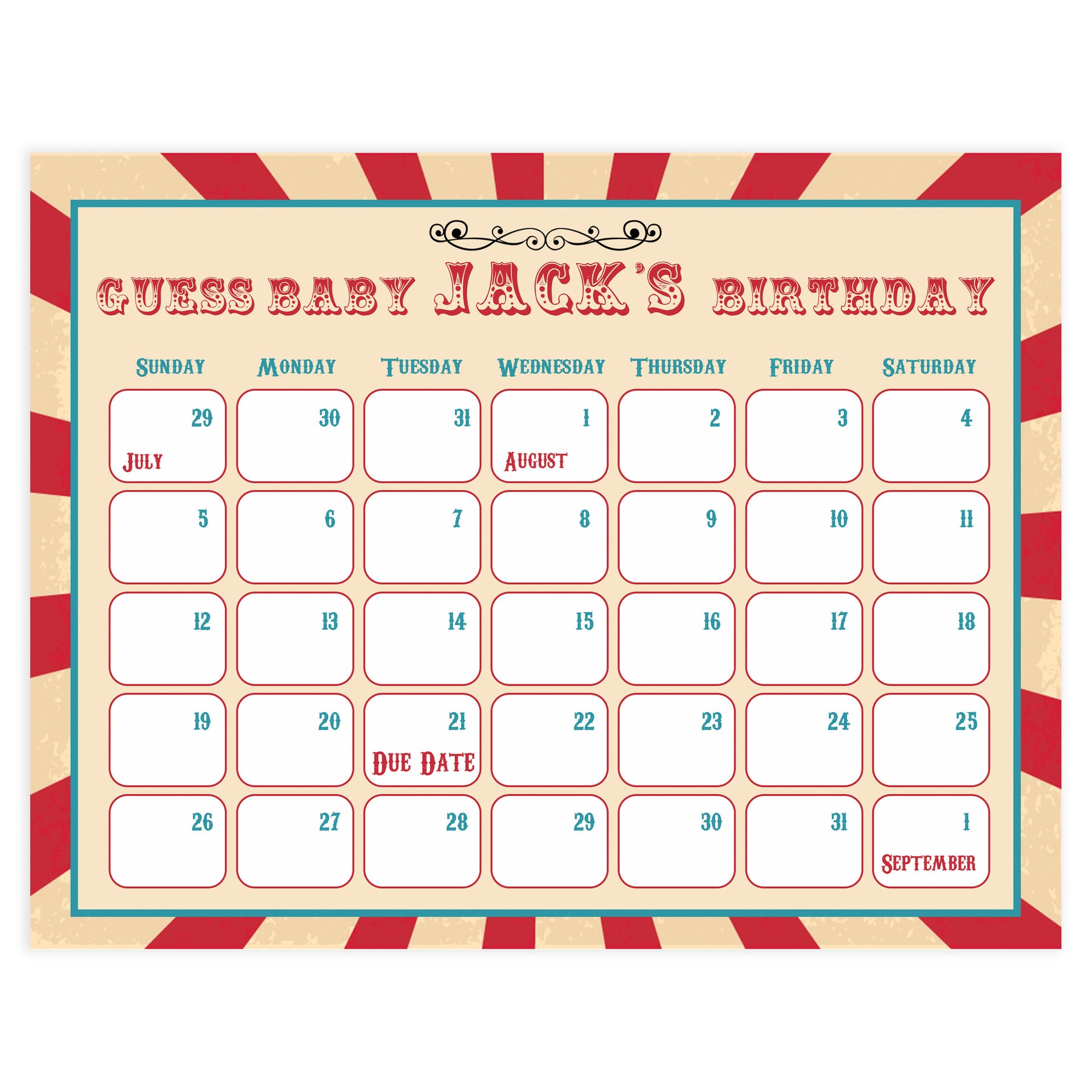 guess the baby birthday game, baby birthday predictions game, circus baby shower games, carnival fun baby shower games