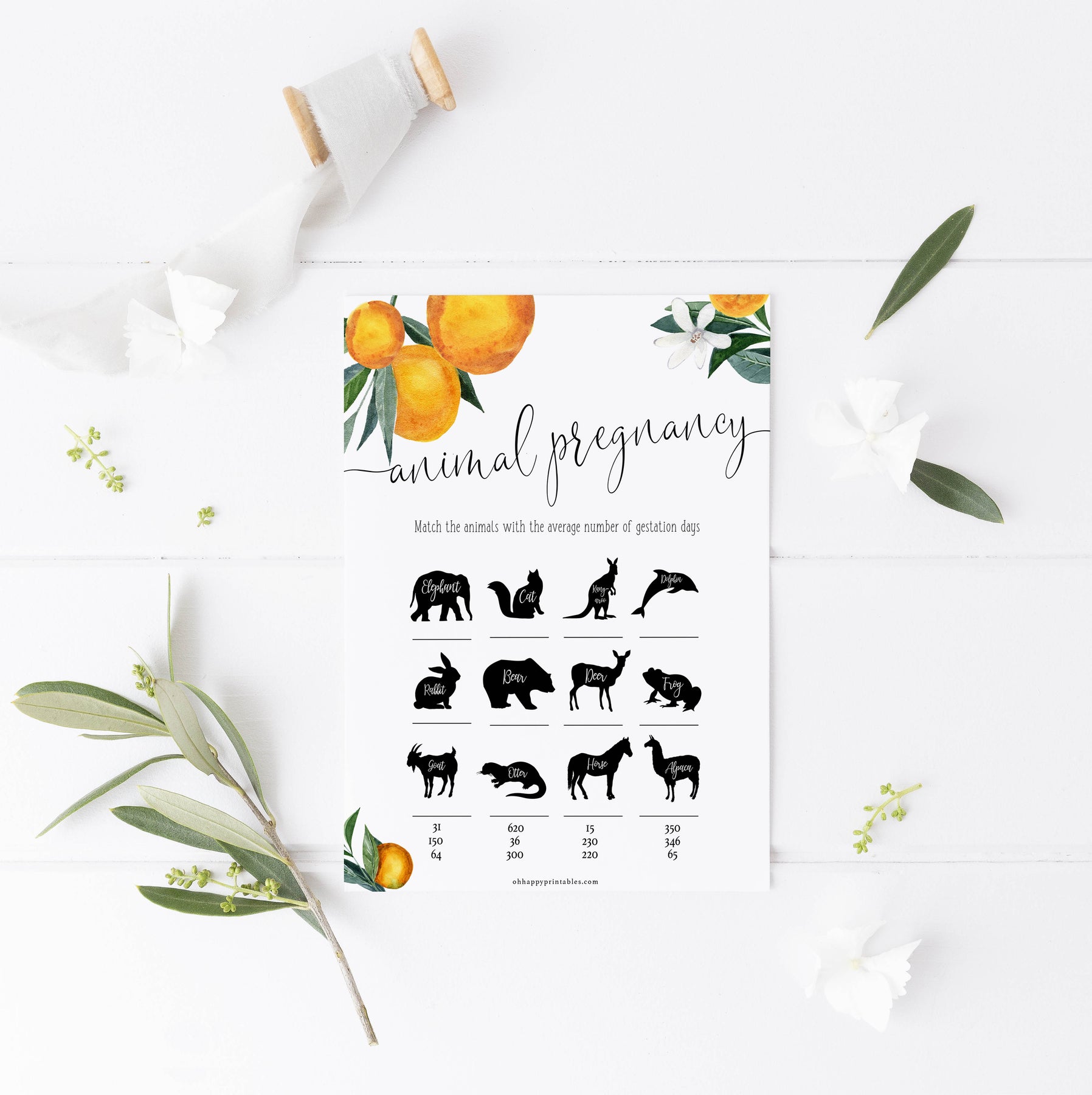 Get your friends to match the animal to the average pregnancy days. The person with the most matches wins. This is a fun one! All you need to do is download the game and print at home.