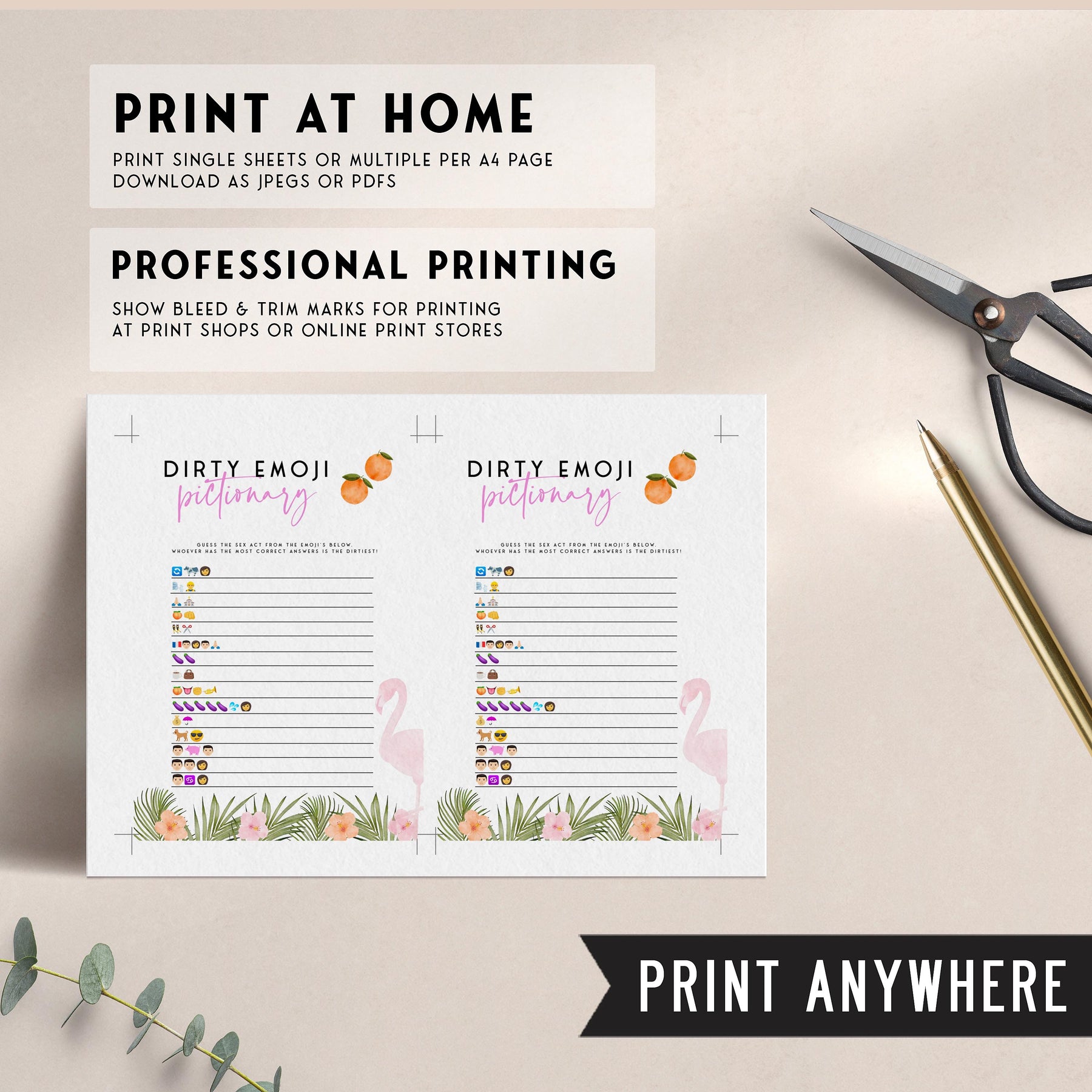 Fully editable and printable dirty emoji pictionary game with a miami design. Perfect for a miami, Bachelorette themed party