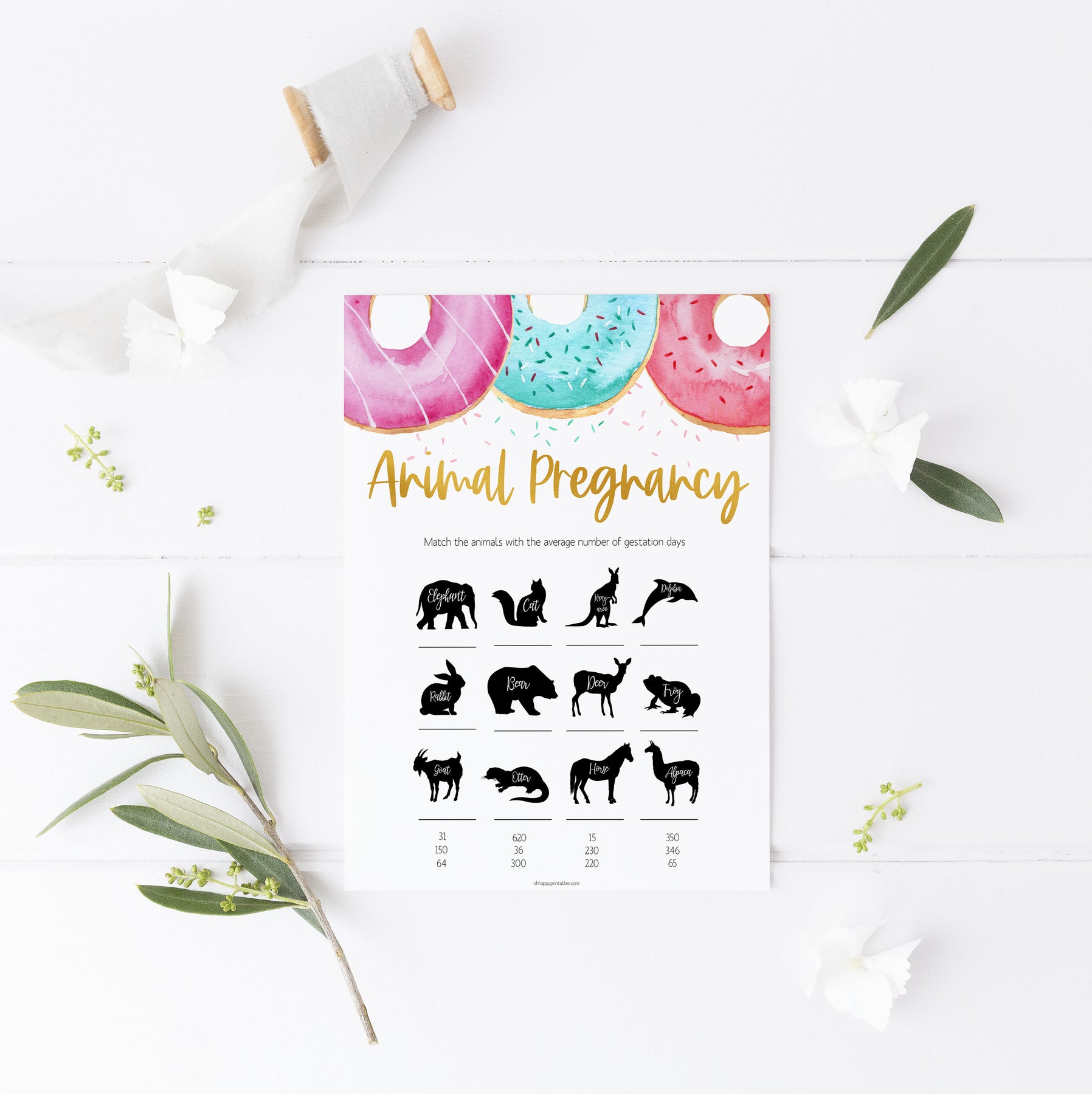 Get your friends to match the animal to the average pregnancy days. The person with the most matches wins. This is a fun one! All you need to do is download the game and print at home.