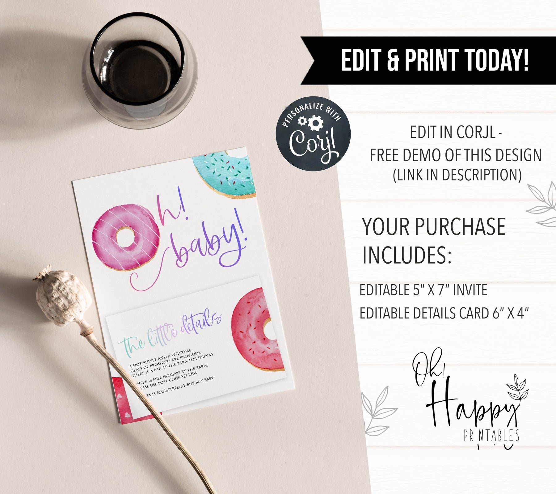 From our best-selling baby shower invitations, including a details card, it has everything your friends and family need to make it a party to remember. Download immediately and edit yourself, it couldn't be simpler!