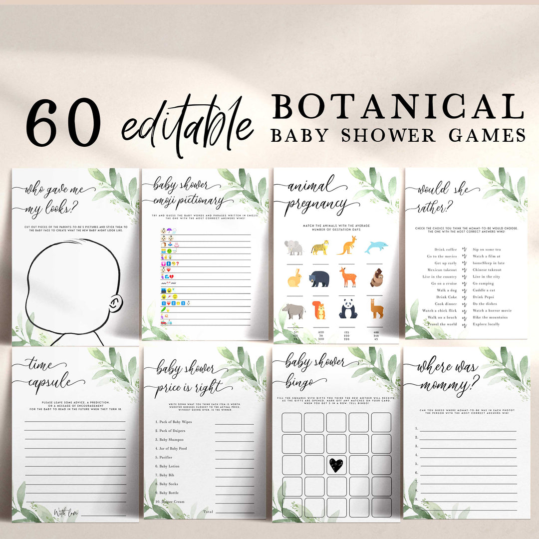 30 EDITABLE Baby Shower Games - Wild Flowers