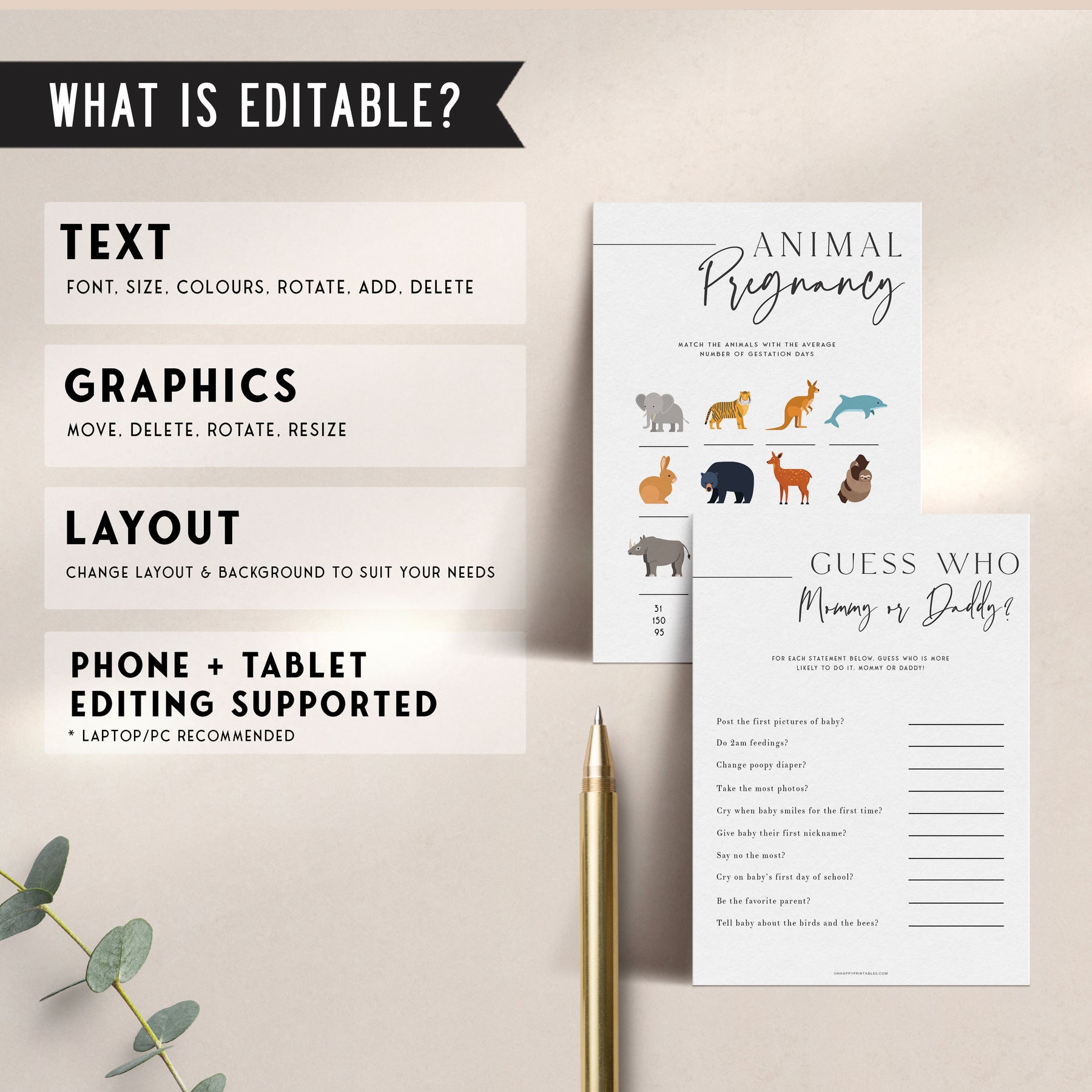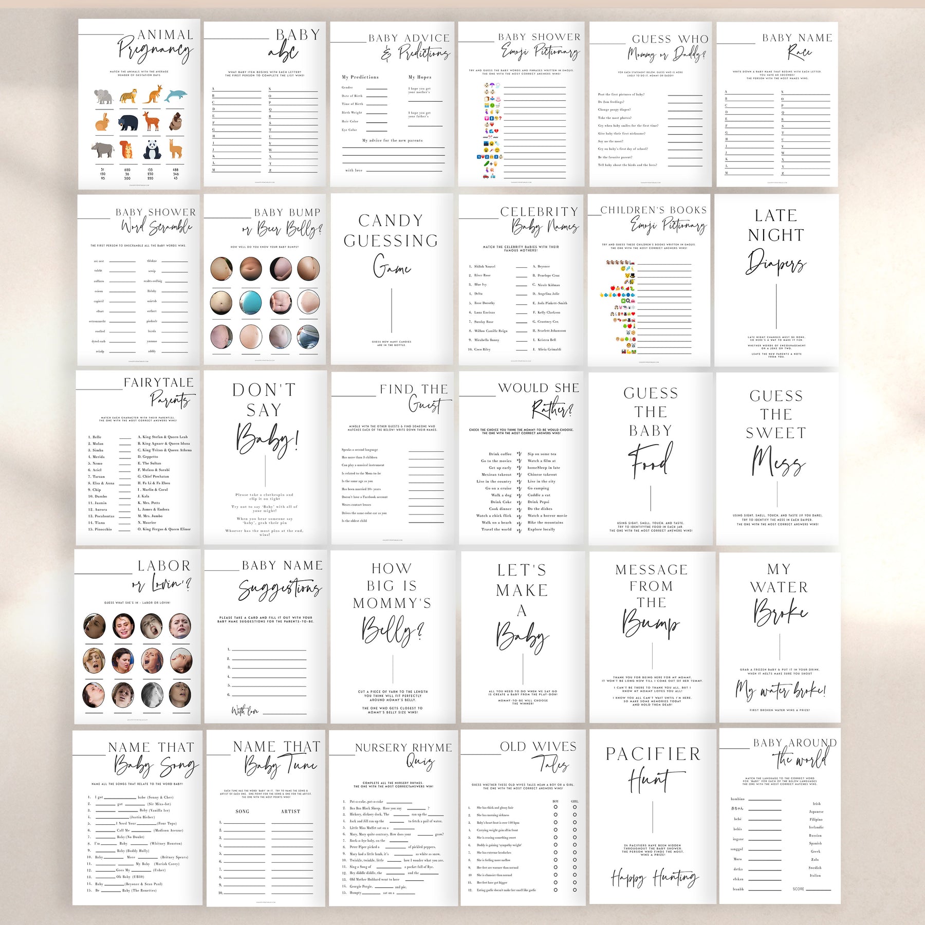 30 of the best and most hilarious baby shower games in one package, fully editable and available immediately after purchase. Make your baby shower party one to remember!