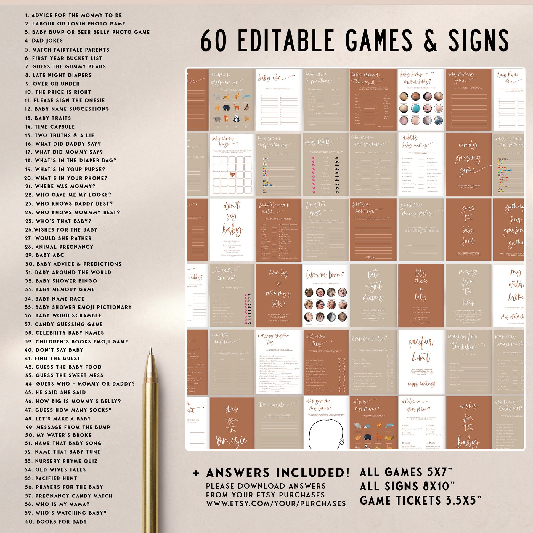 - 60 FULLY EDITABLE BABY SHOWER GAMES