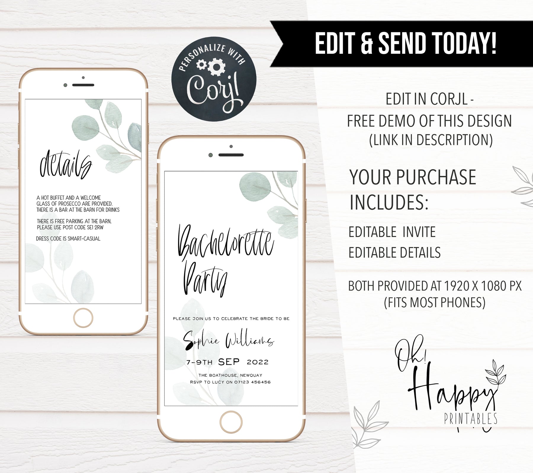 EDITABLE Bachelorette Party Invitation - Eucalyptus Vine
