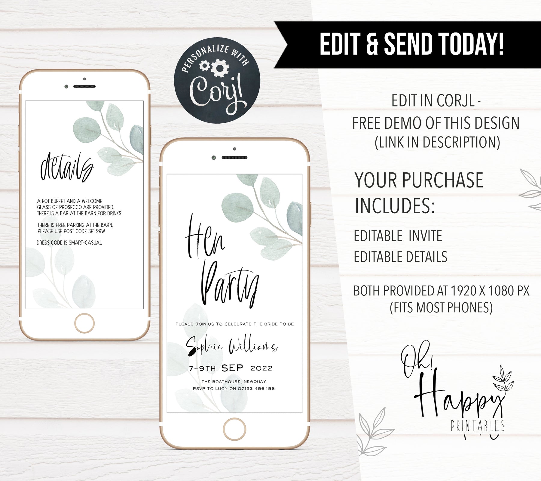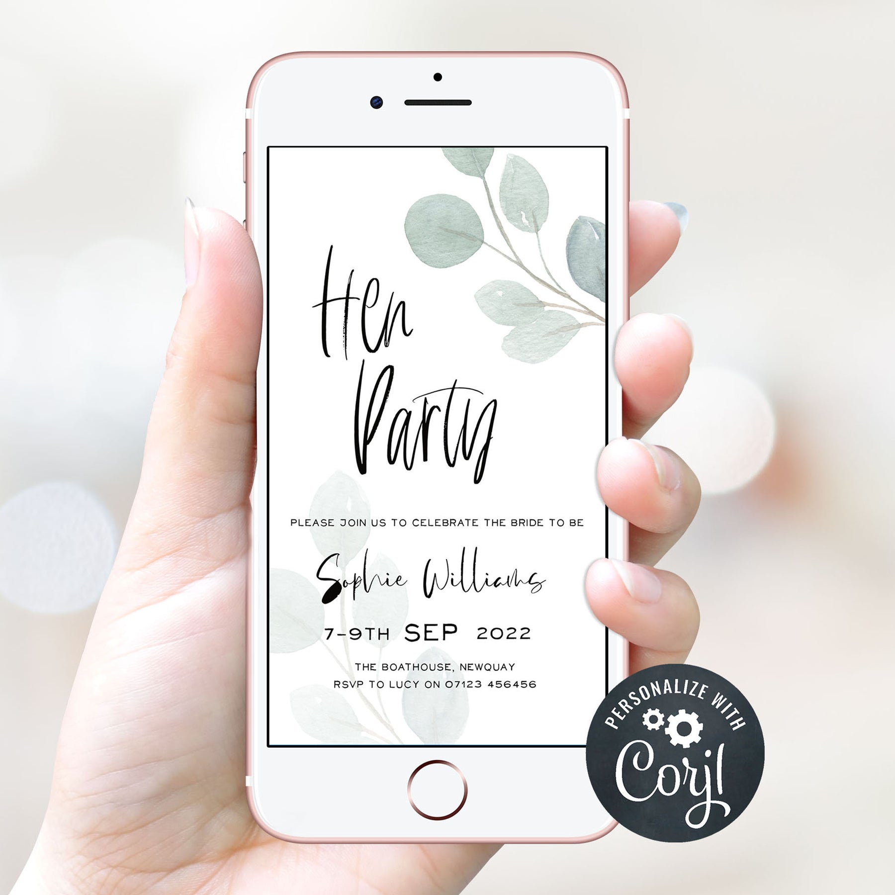 EDITABLE Hen Party Invitation - Eucalyptus Vine