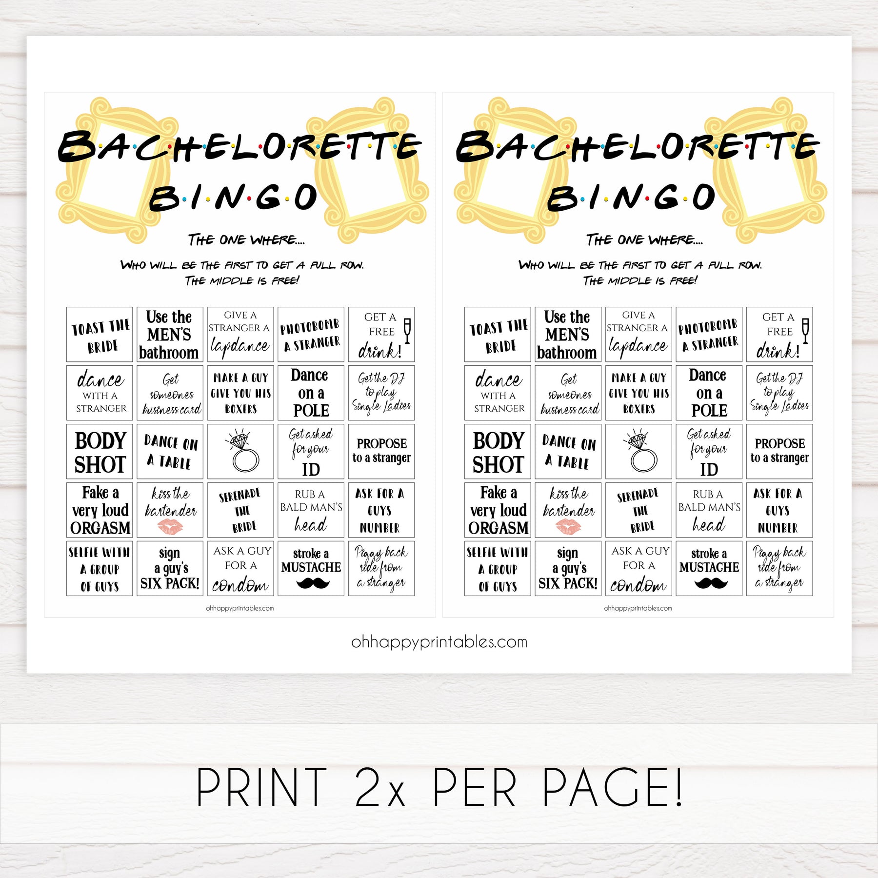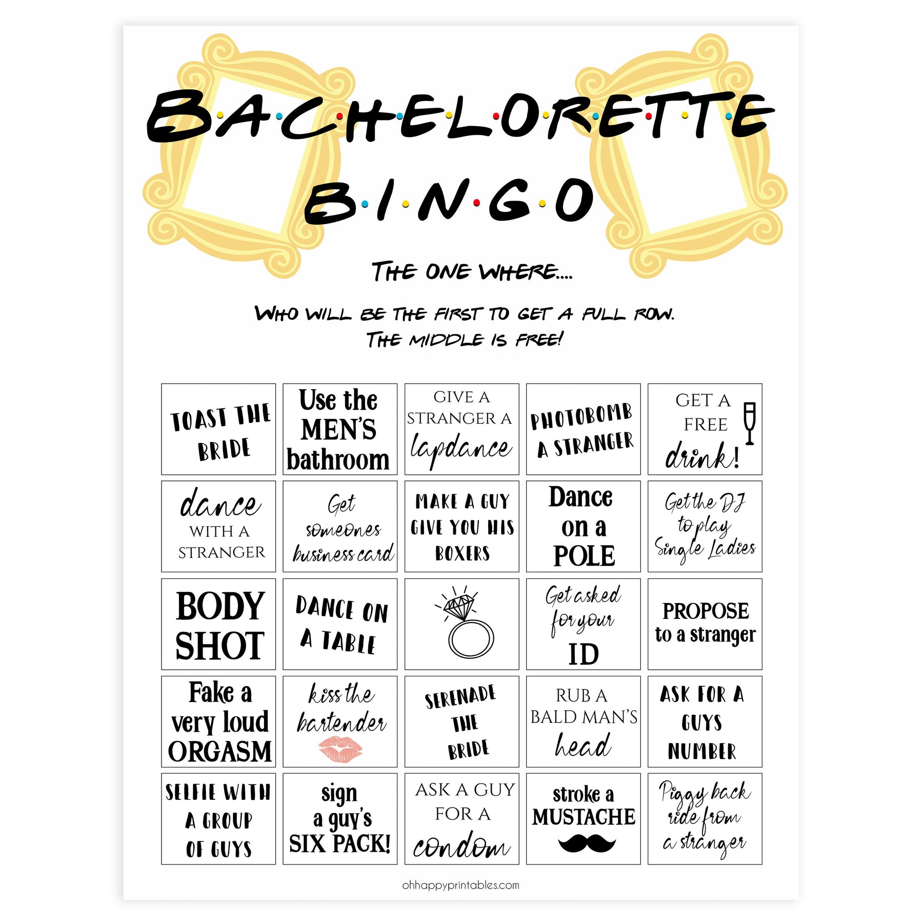 Make it a bachelorette party to remember with this fun bachelorette party bingo. With a variety of fun dares and challenges, there's no doubt it will be an entertaining night. Simply download and print at home, it couldn't be easier.