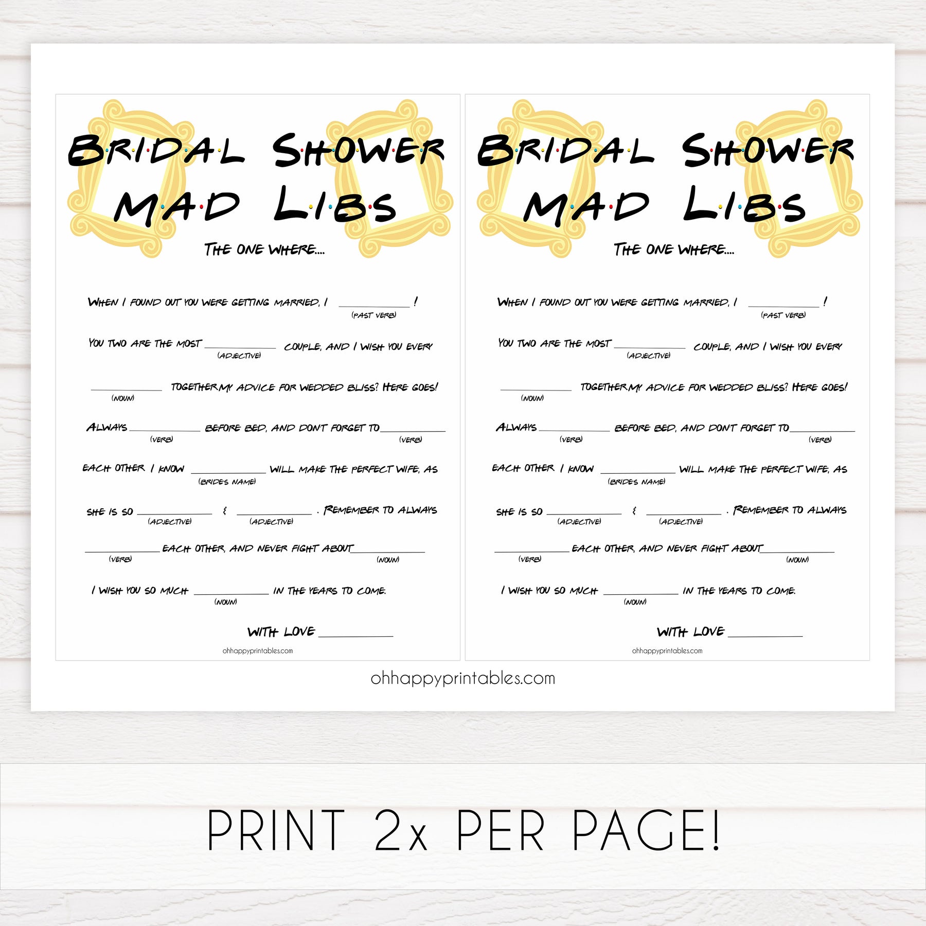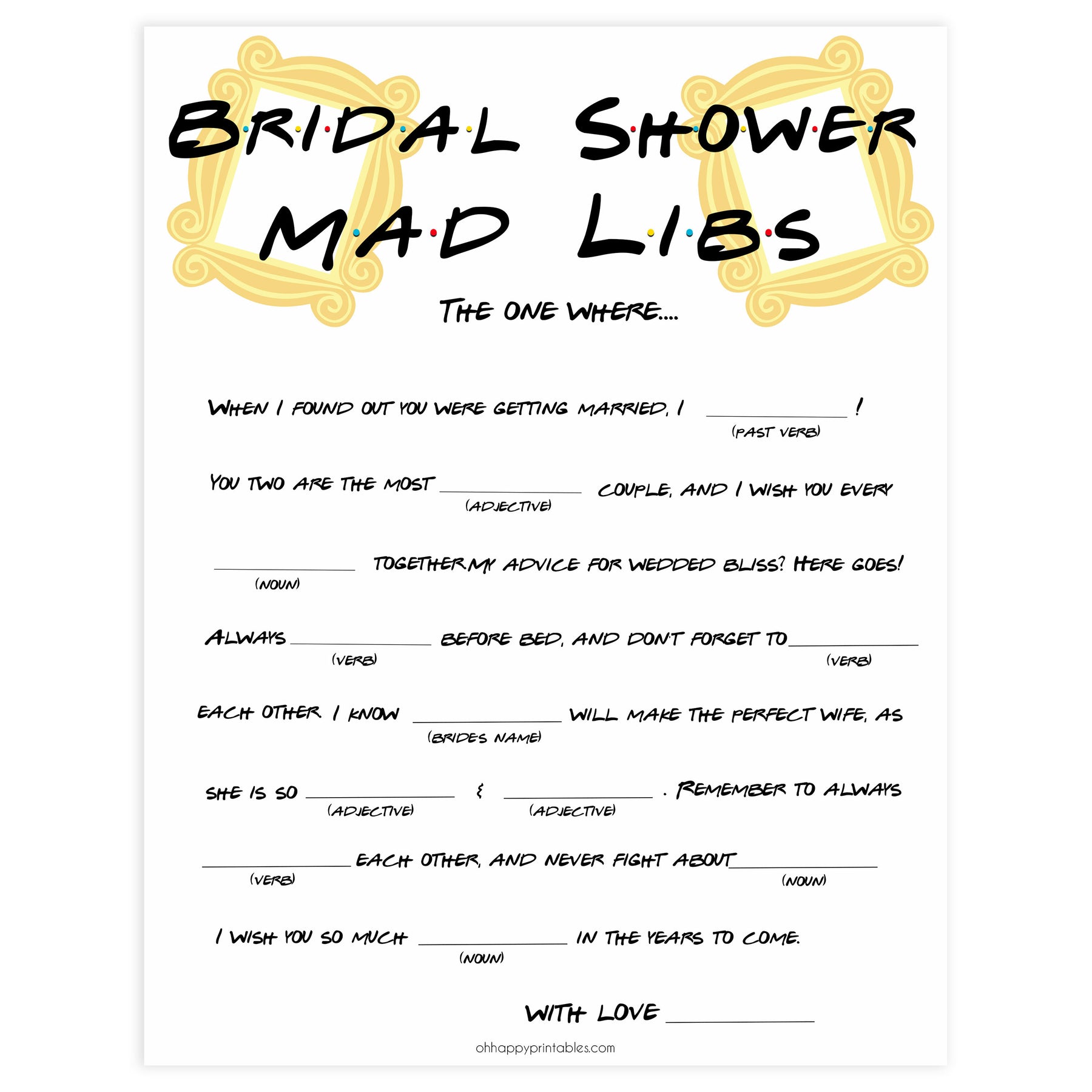 bridal madlibs mad libs game, Printable bridal shower games, friends bridal shower, friends bridal shower games, fun bridal shower games, bridal shower game ideas, friends bridal shower