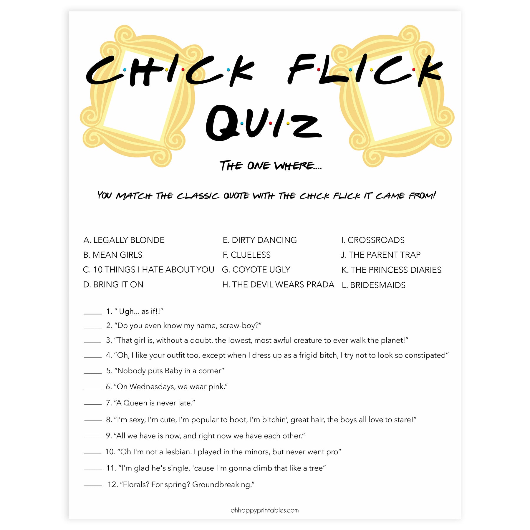 It's not a girls night in without a chick flick, right? Test your movie knowledge with our Chick Flick Quiz, which is guaranteed to have you quoting your favourites in no time. A lighthearted game to start your night off in the right way.
