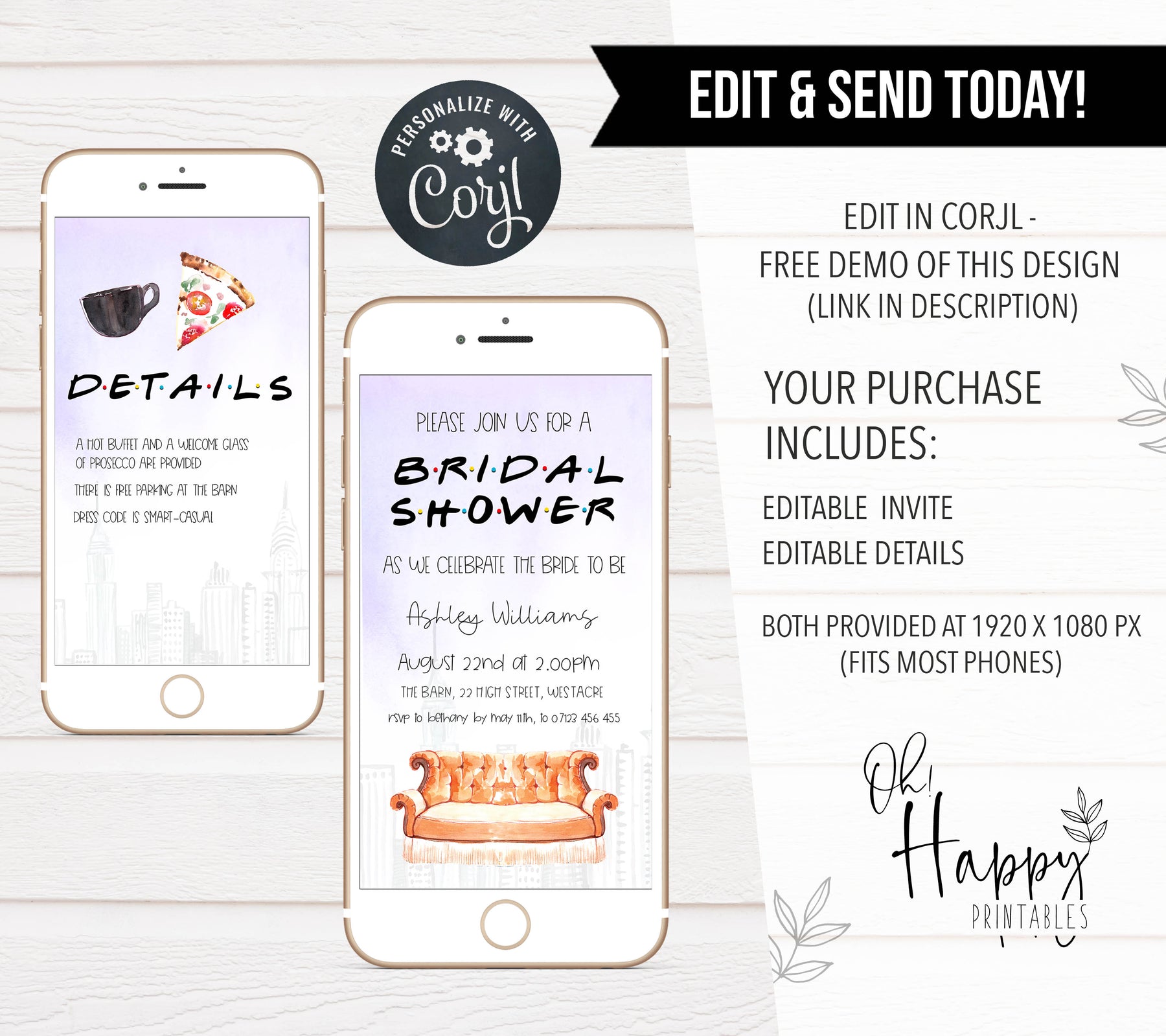 When it comes to sending out invitations for your bridal shower or bachelorette party, paper invitations can be costly and time-consuming. With Messenger and Whatsapp groups however, the digital invite is becoming a popular way to let all your guests know what's happening on the day. It's easy to send out, and even easier to update should your plans change. Simply download to your phone as an image, and send to the group. Let the party begin!