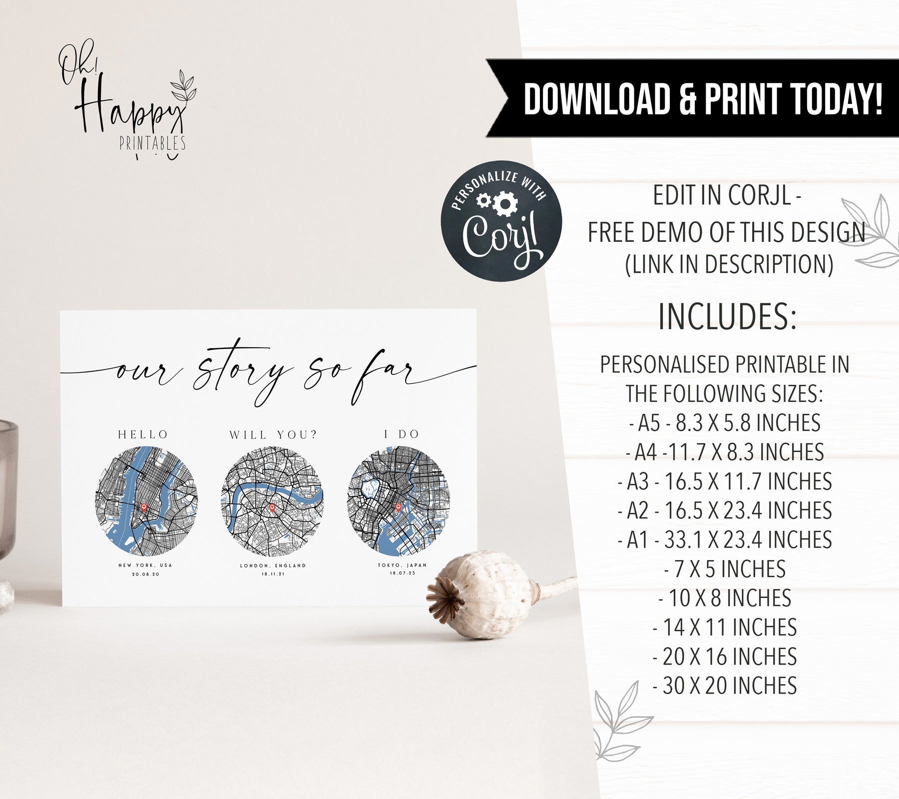 Our Story So Far print is the perfect personalised gift for your loved one this Christmas. Showcase the special moments that make your love story unique - where you said hello, will you and I do. Add it to your wall décor in the bedroom, lounge, office, hallway or anywhere special. As it's a printable download, its a great last minute gift for your girlfriend, boyfriend, wife, or husband. Simply download and print at home, it couldn't be easier.