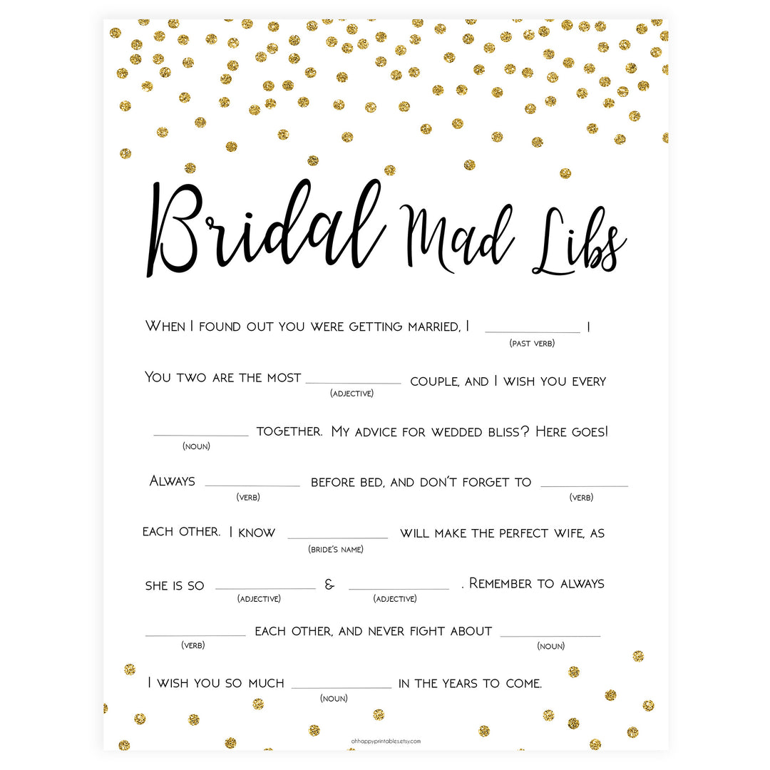 Bridal Mad Libs Game - Gold Foil