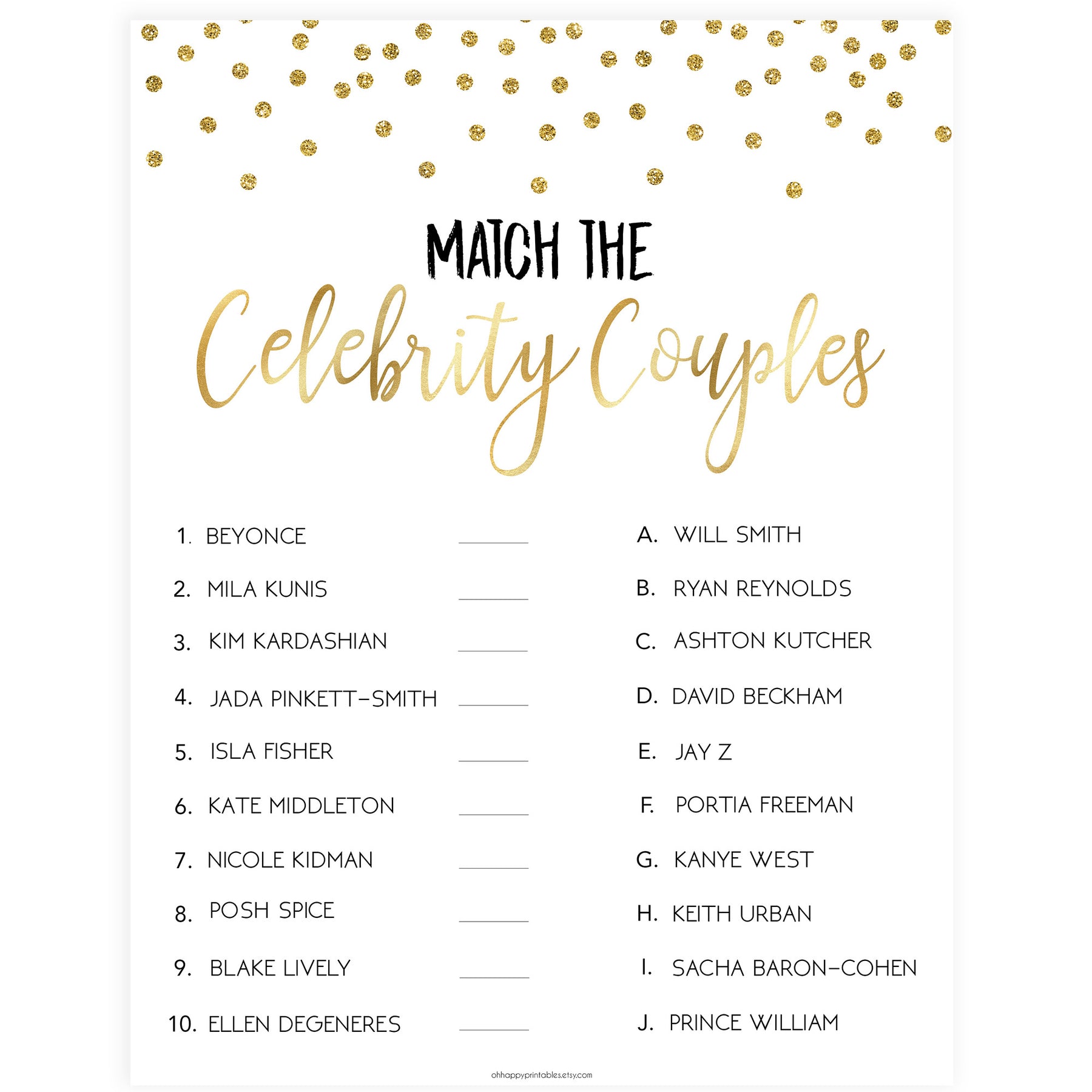 A fun Bridal Shower game for anyone who keeps up with the latest gossip, match the celebrity with their famous other half! A great game that everyone can get involved in, all you need to do is download and print at home.