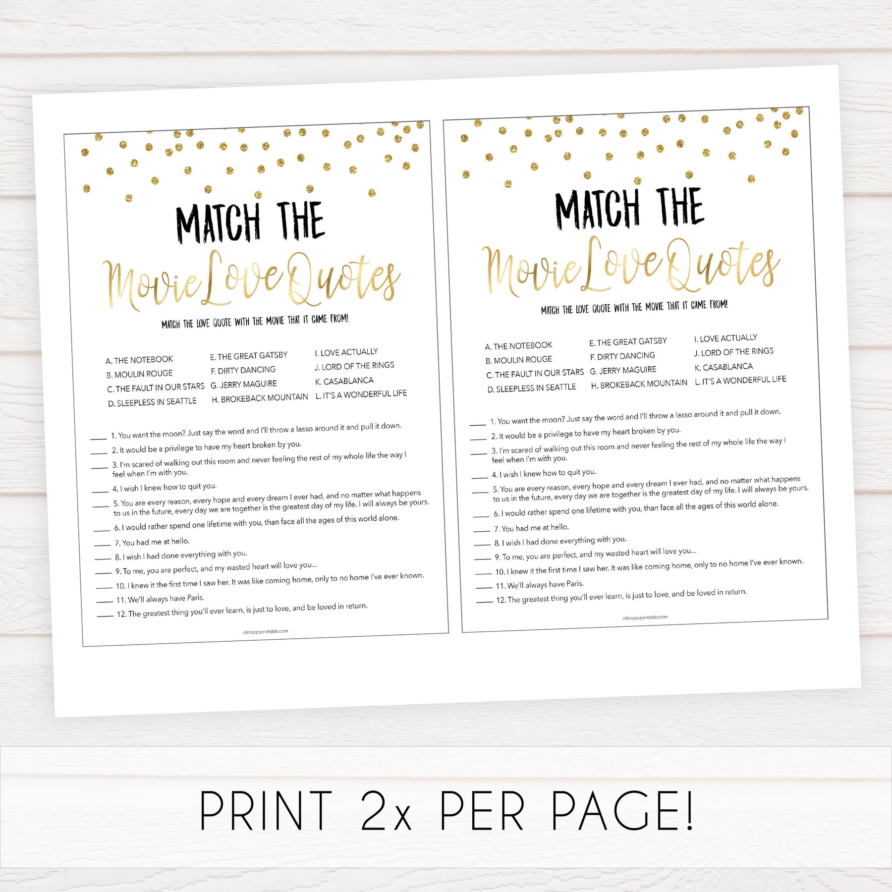 Do you know your Pride & Prejudice from your Casablanca? Test your movie romance knowledge with this unique bridal shower game. Featuring love quotes from some of the greatest films of all time, you might even find some inspiration for your wedding day vows!