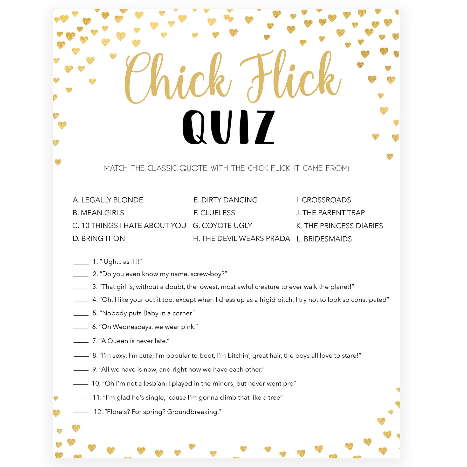 It's not a girls night in without a chick flick, right? Test your movie knowledge with our Chick Flick Quiz, which is guaranteed to have you quoting your favourites in no time. A lighthearted game to start your night off in the right way.