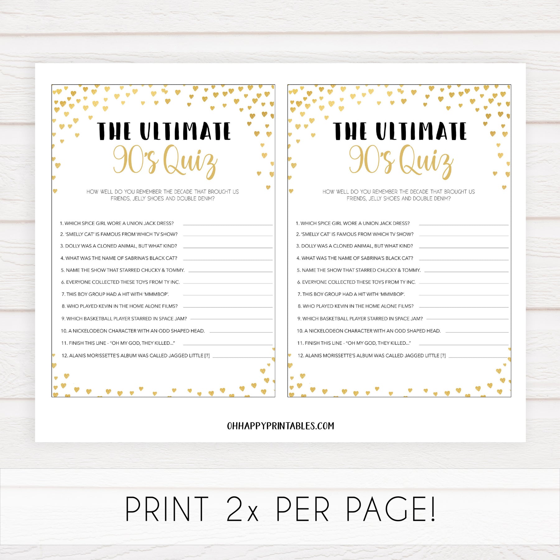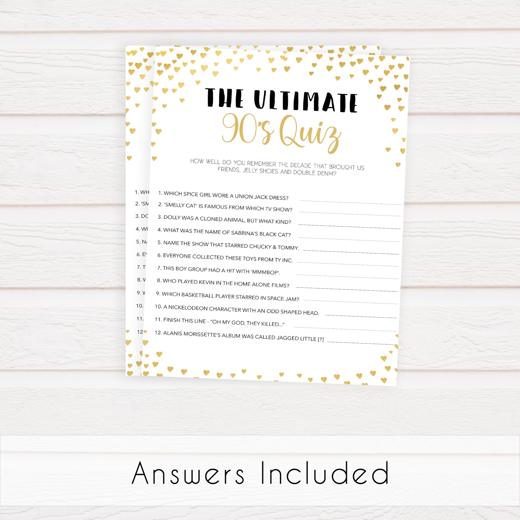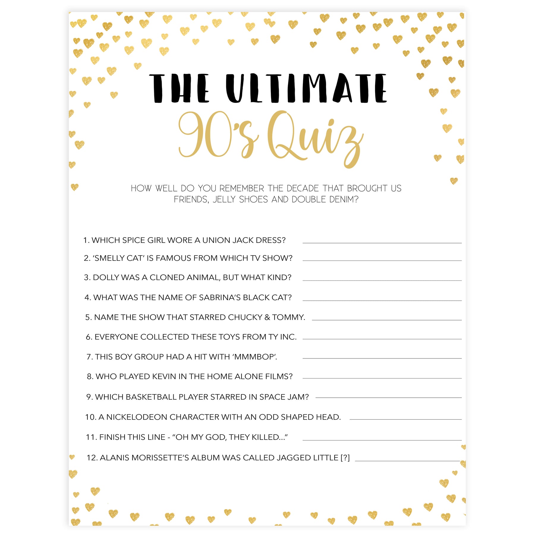 This iconic era gave us Friends, jelly shoes and some pretty awesome boybands. This bachelorette party game is a great one to get the night started, and tests how well you remember the 90s!