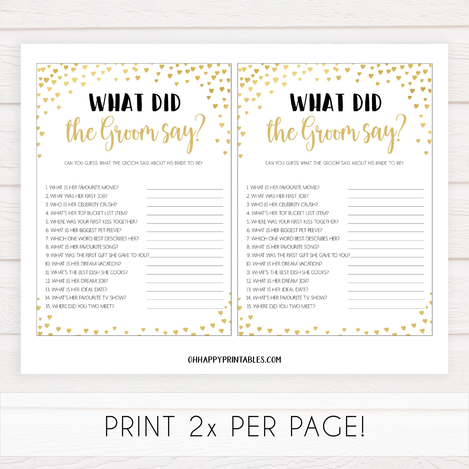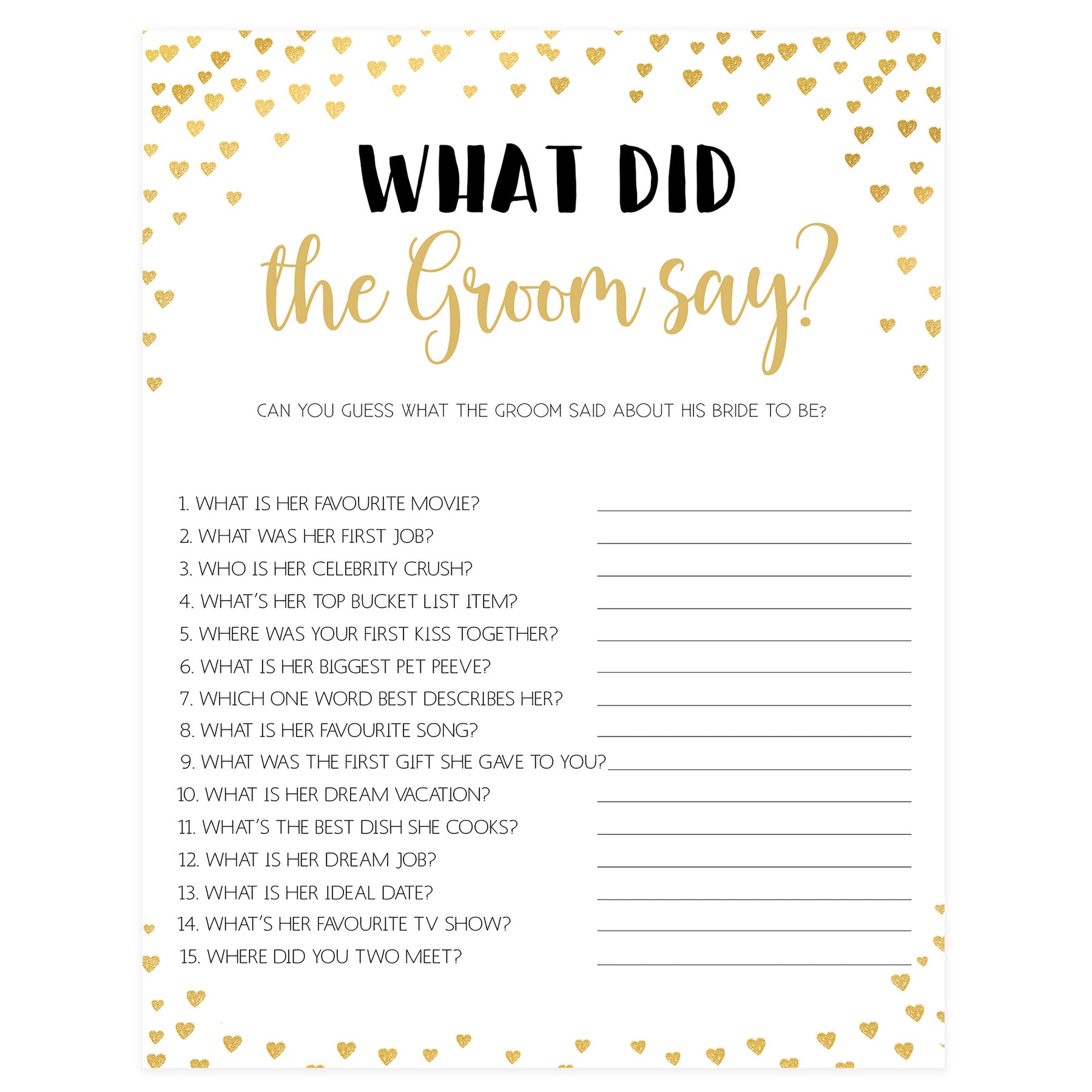 Gold hearts bridal shower games, what did the groom say, printable bridal games, gold bridal games, gold hearts bridal games, fun bridal games, top bridal games, best bridal games