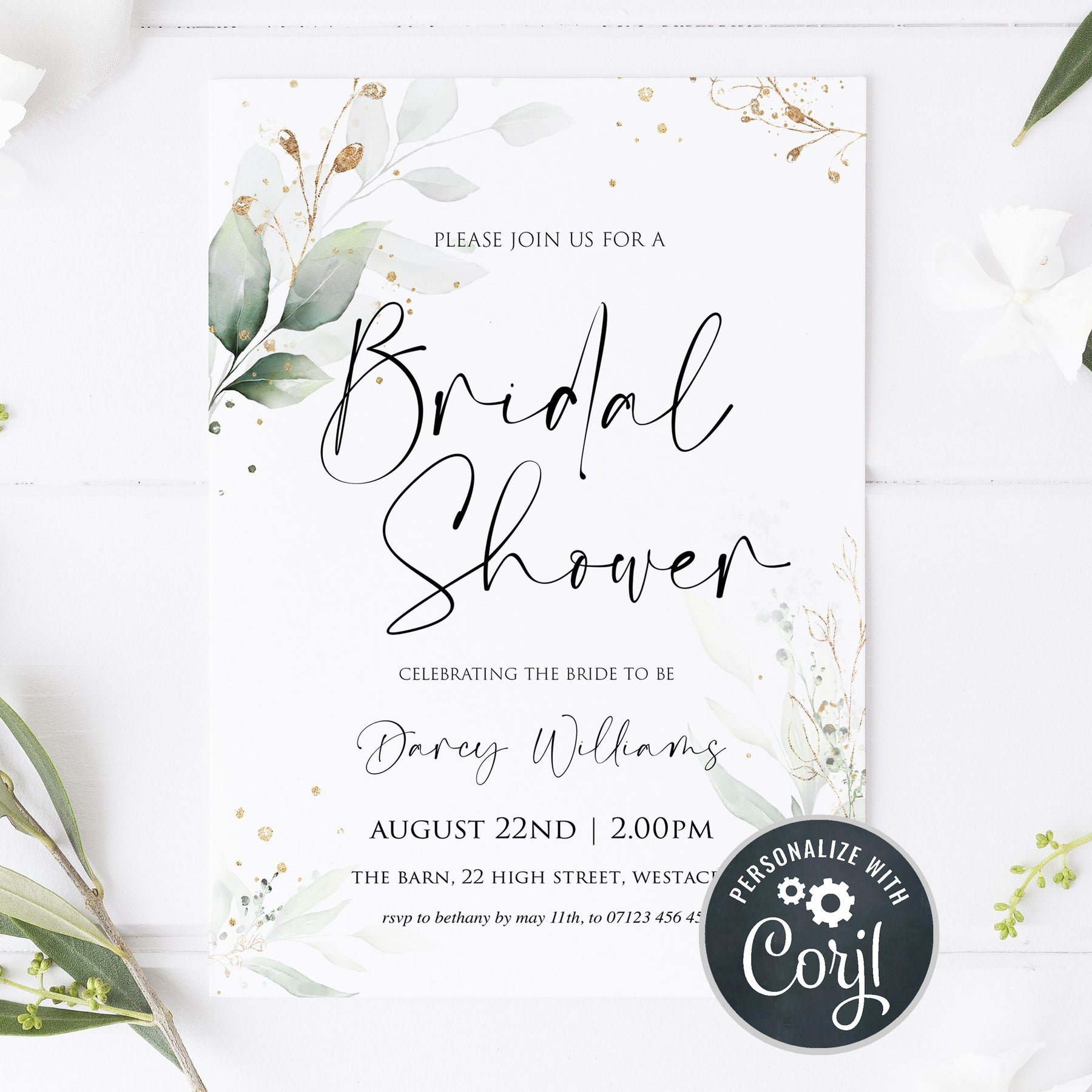 From our bridal collection, this invite is the perfect start to your bridal celebrations. Edit yourself and download, it couldn't be simpler! This invitation set also includes a matching details card.