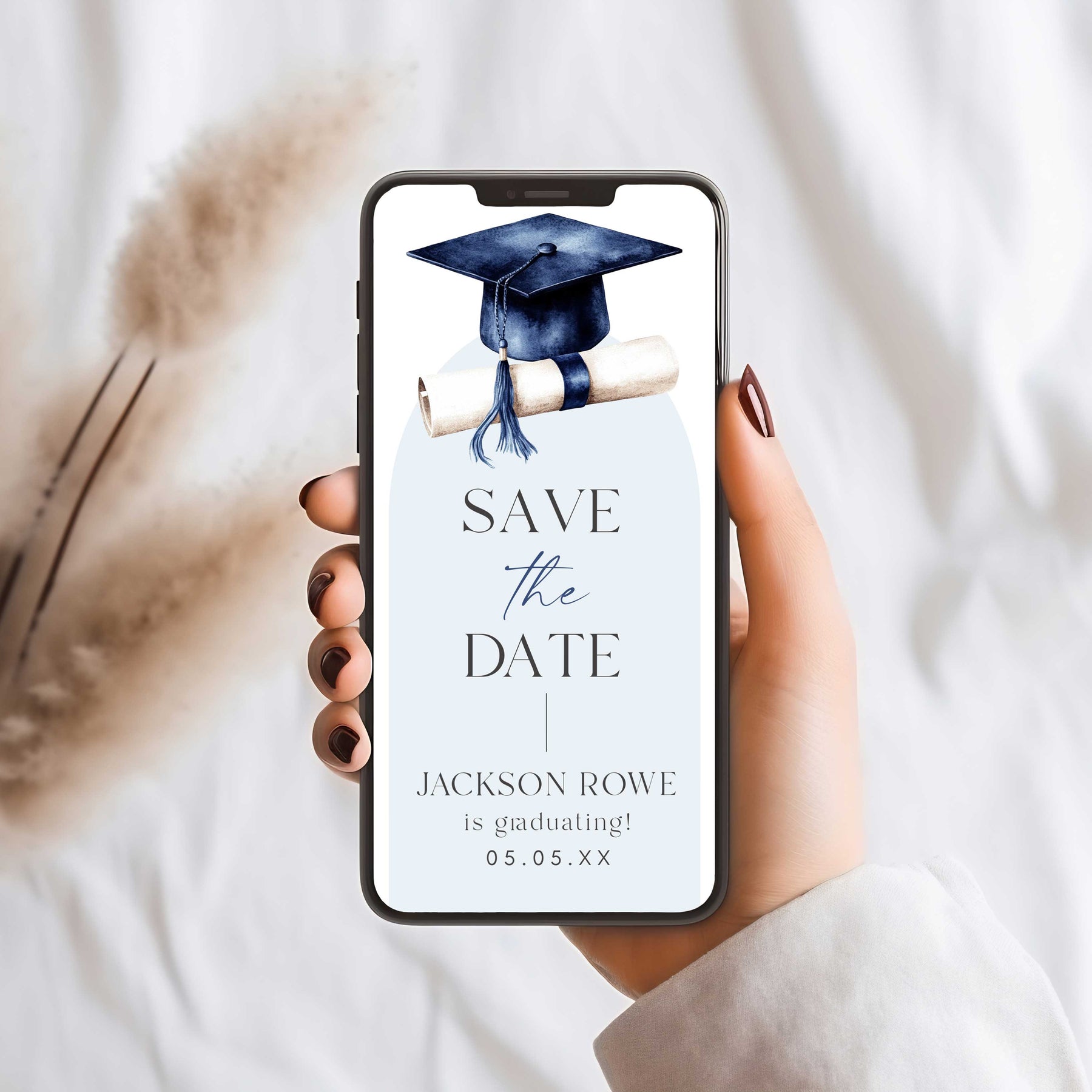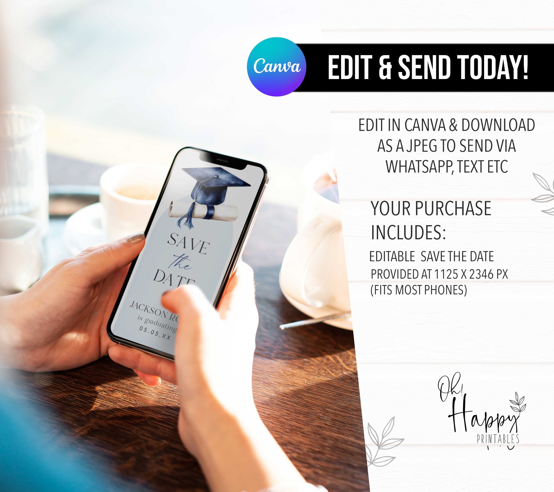 It's time to announce your amazing achievement with our Graduation Save The Date digital template! Our Digital Save The Date Graduation Invitation is the perfect way to let everyone know your graduation news. Our Graduation Save The Day has been designed to be sent via WhatsApp or Text Message, making it easy to tell all your friends and family about your graduation. Easy to edit in Canva and send today! It couldn't be easier.
