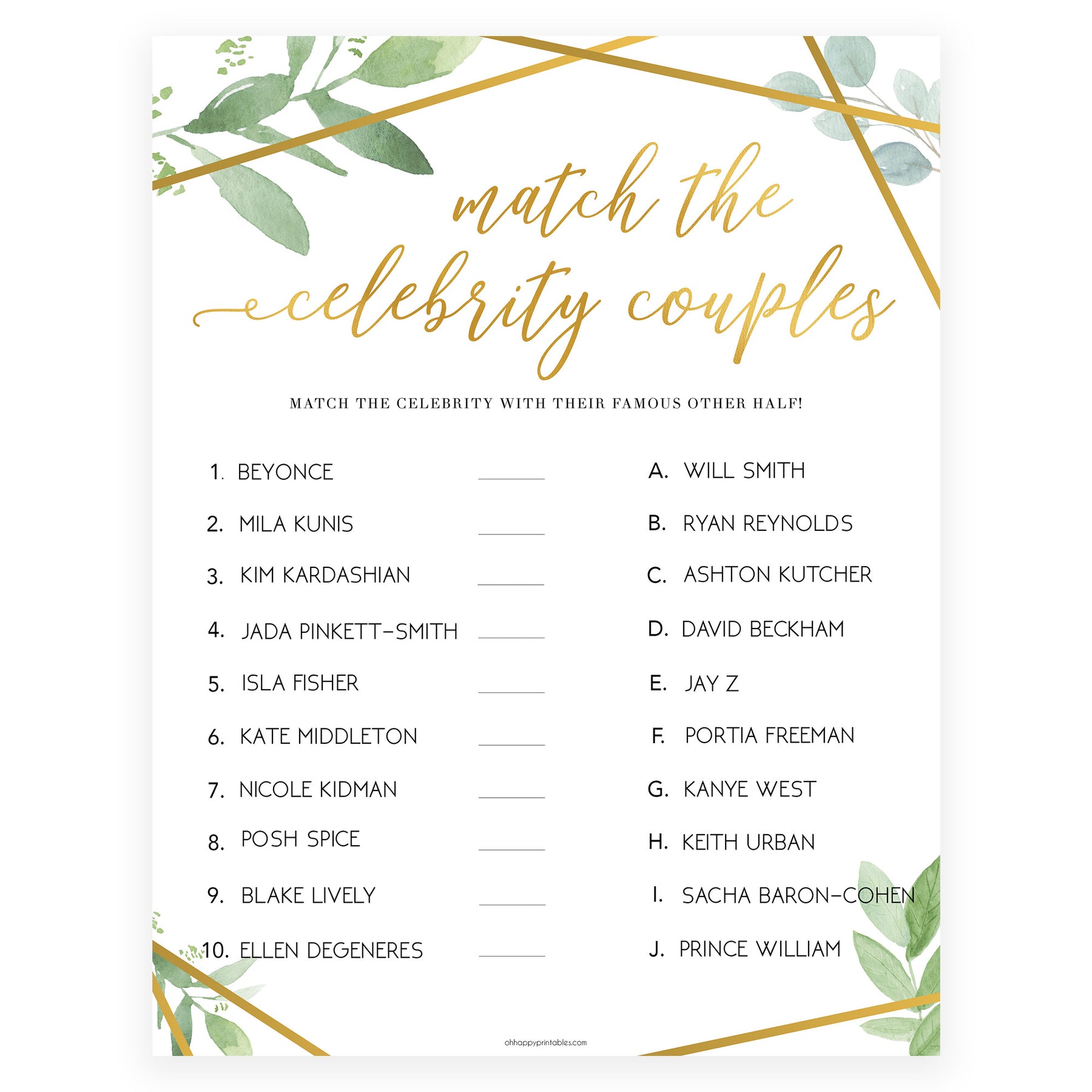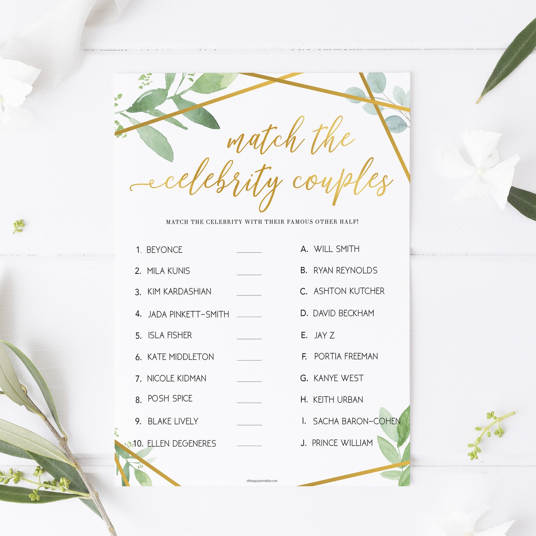 Match Celebrity Couples Game - Gold Greenery