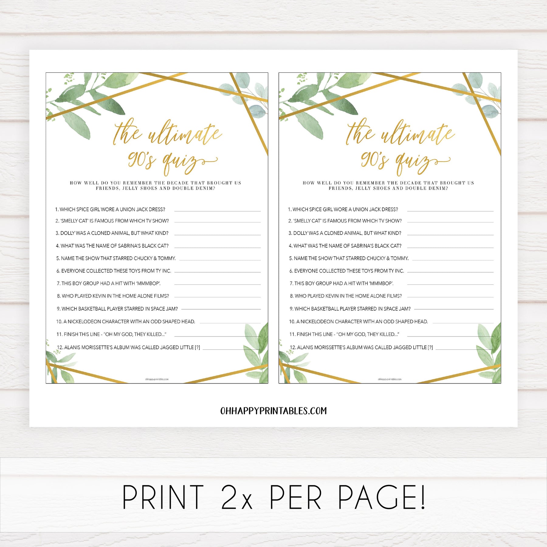 This iconic era gave us Friends, jelly shoes and some pretty awesome boybands. This bachelorette party game is a great one to get the night started, and tests how well you remember the 90s!