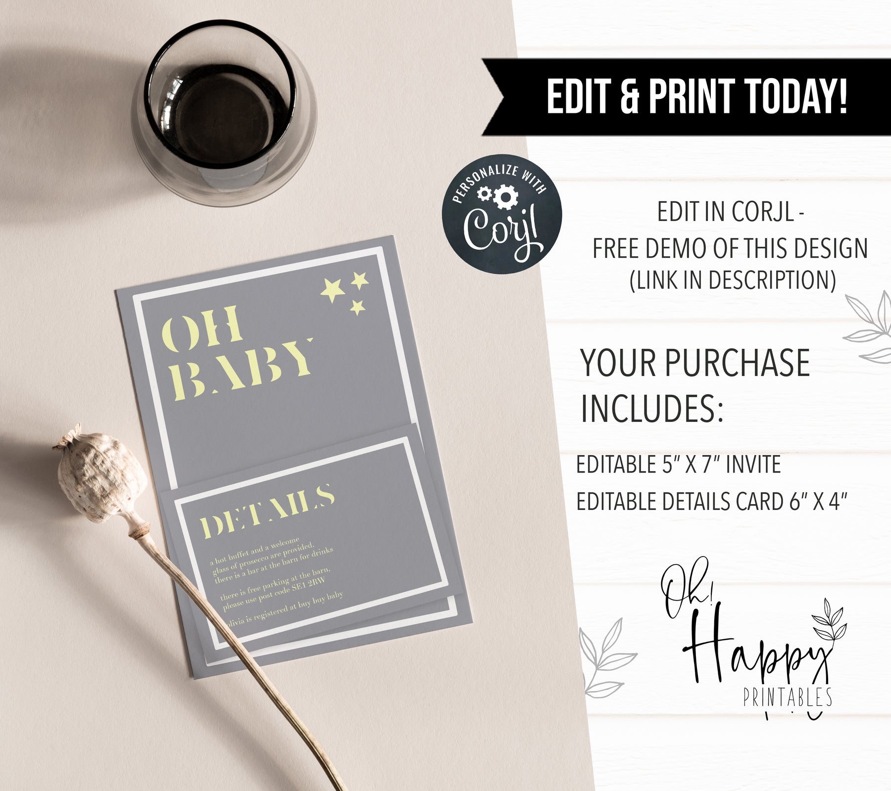 From our best-selling baby shower invitations, including a details card, it has everything your friends and family need to make it a party to remember. Download immediately and edit yourself, it couldn't be simpler!