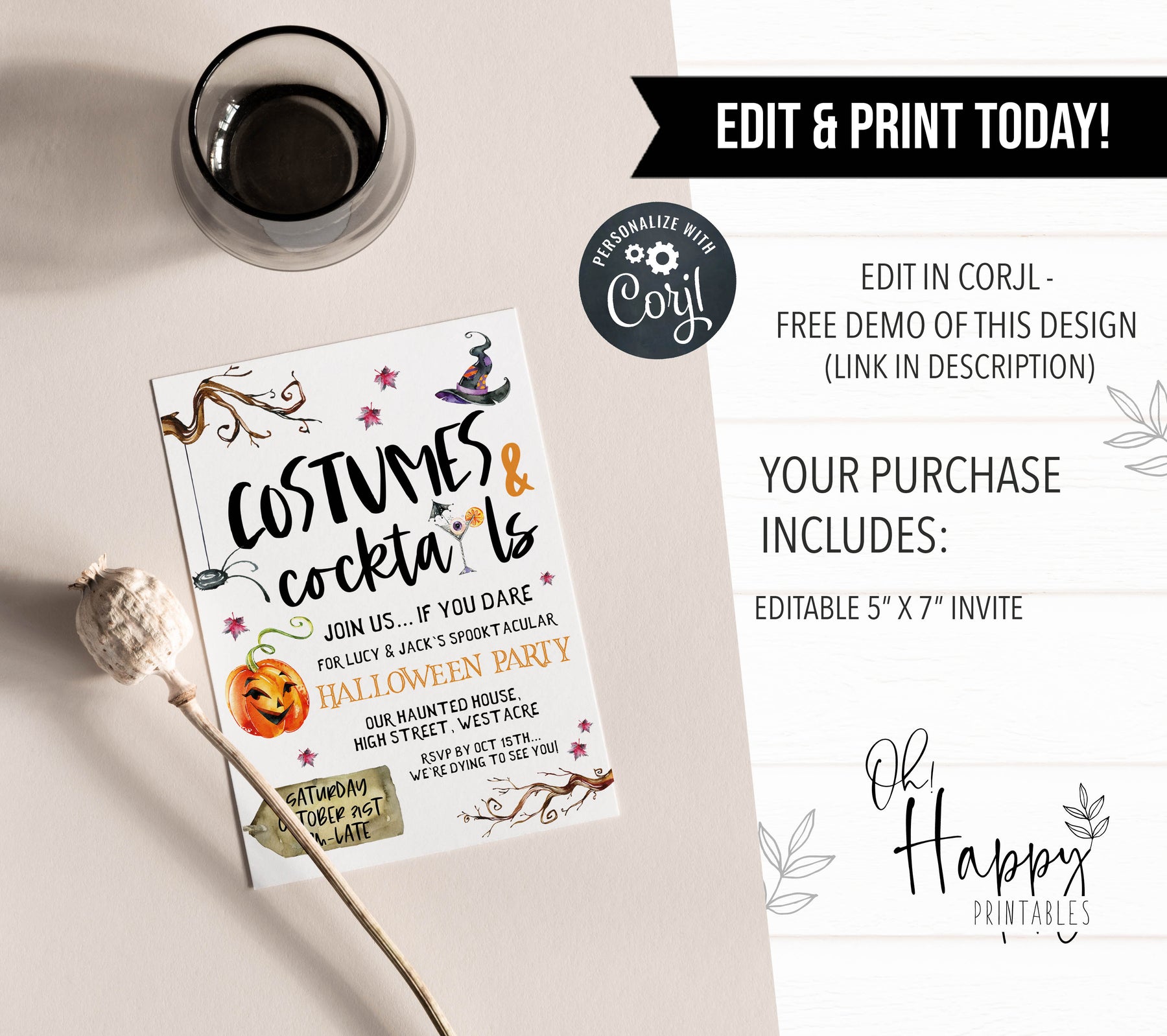 EDITABLE Costumes & Cocktails Invitation - Halloween