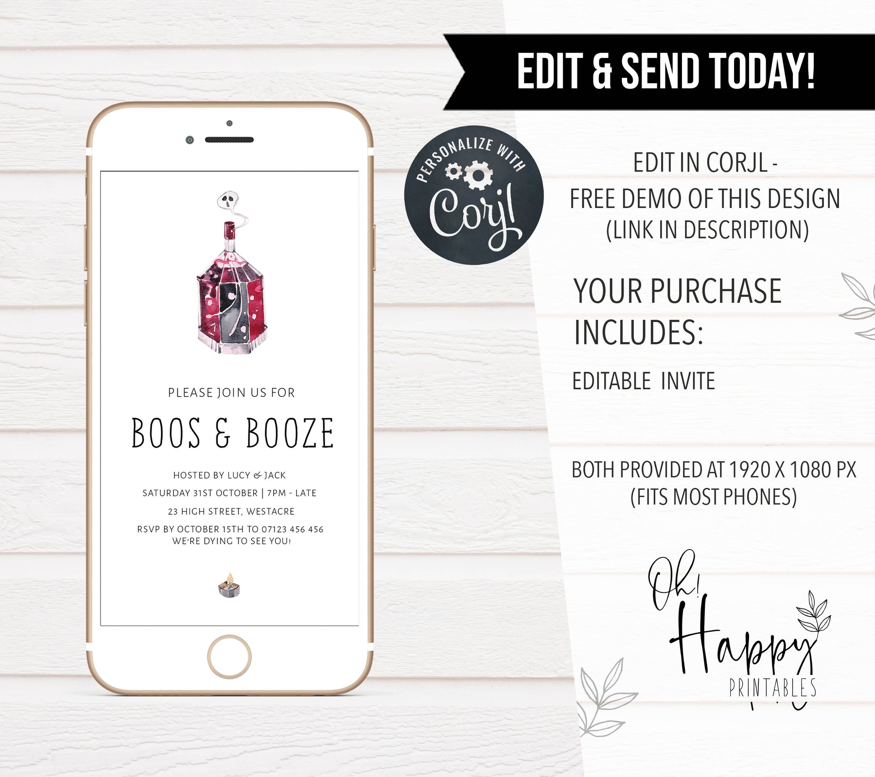 EDITABLE Boos and Booze Invitation Template - Halloween