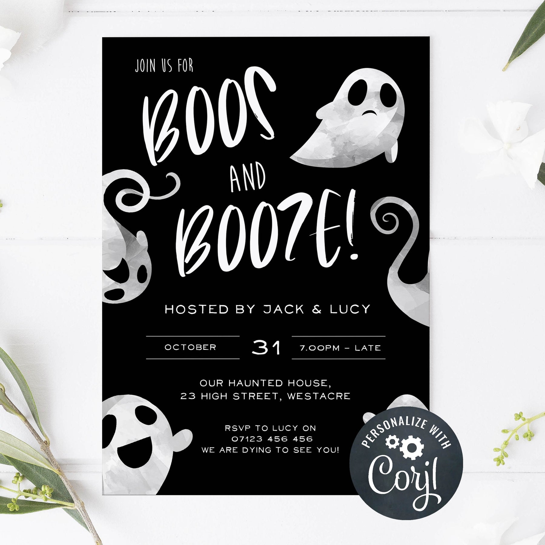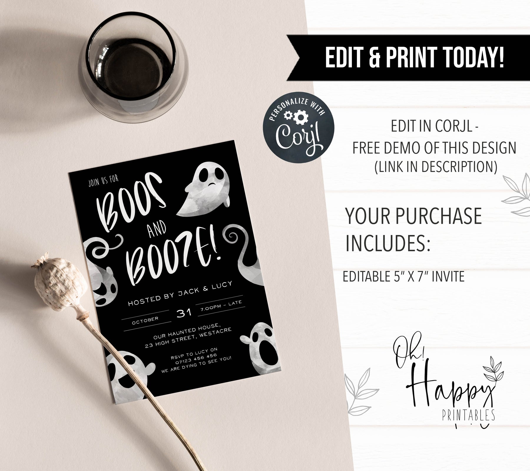 EDITABLE Boos & Booze Halloween Invitation - Halloween