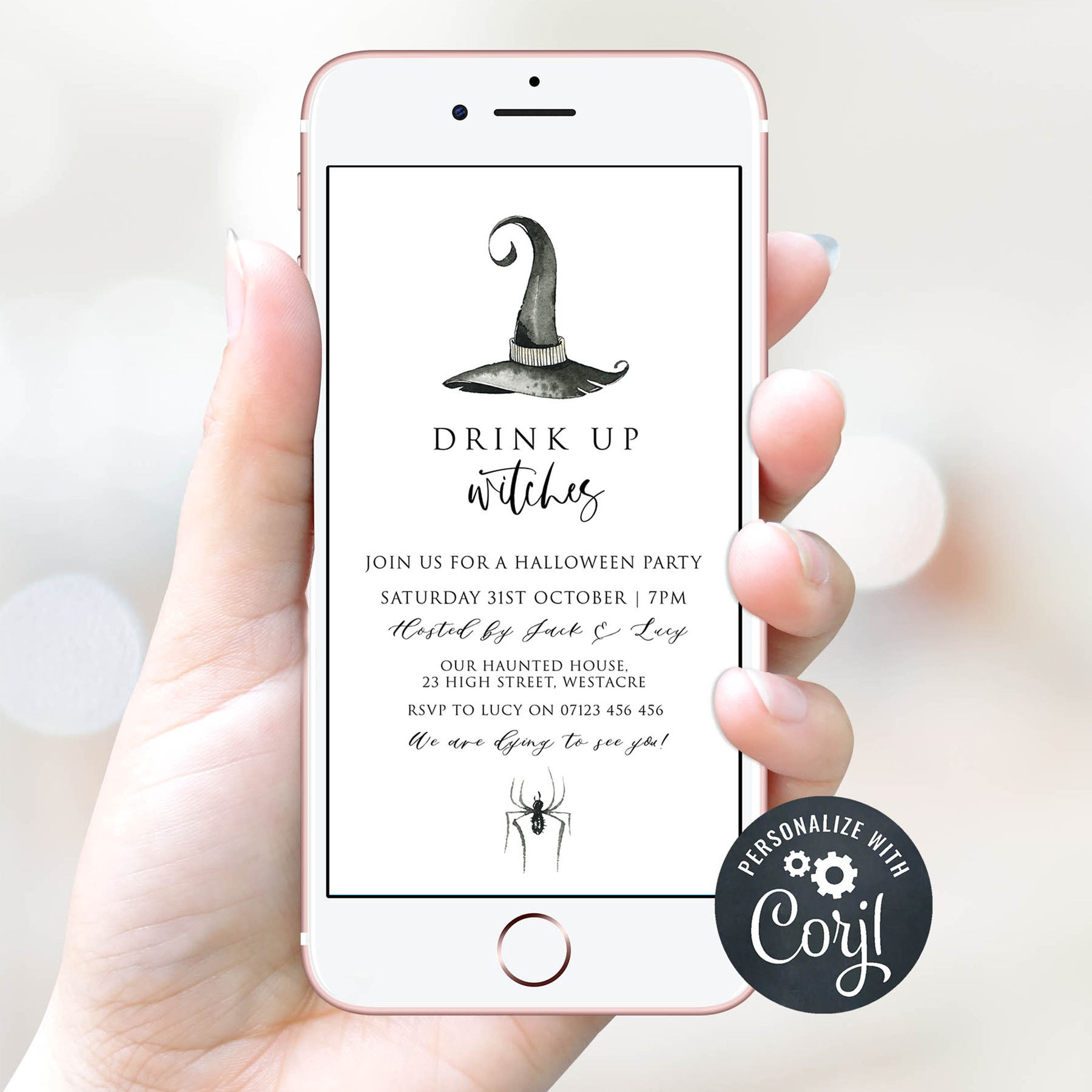 EDITABLE Drink Up Witches Hat Mobile Invitation - Halloween