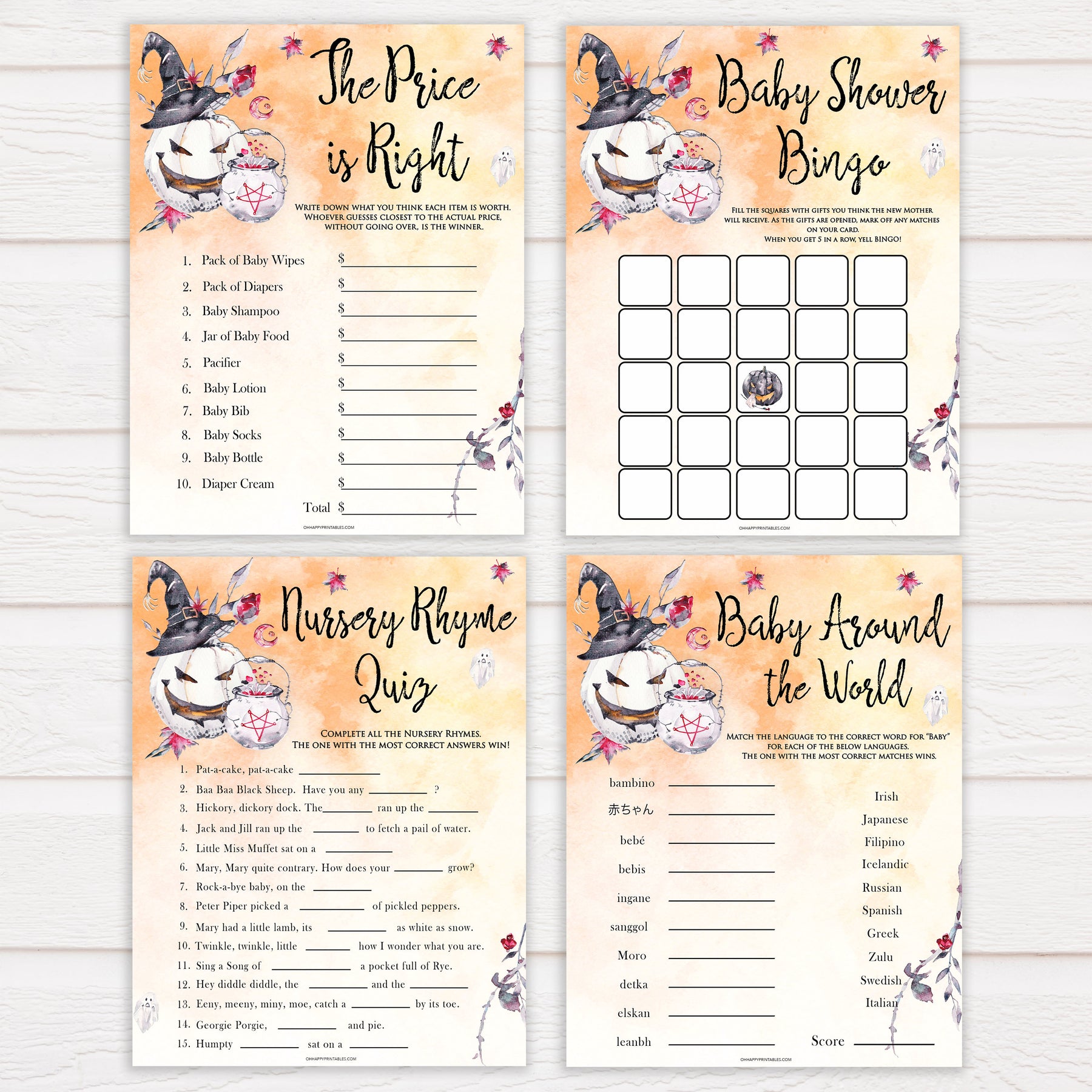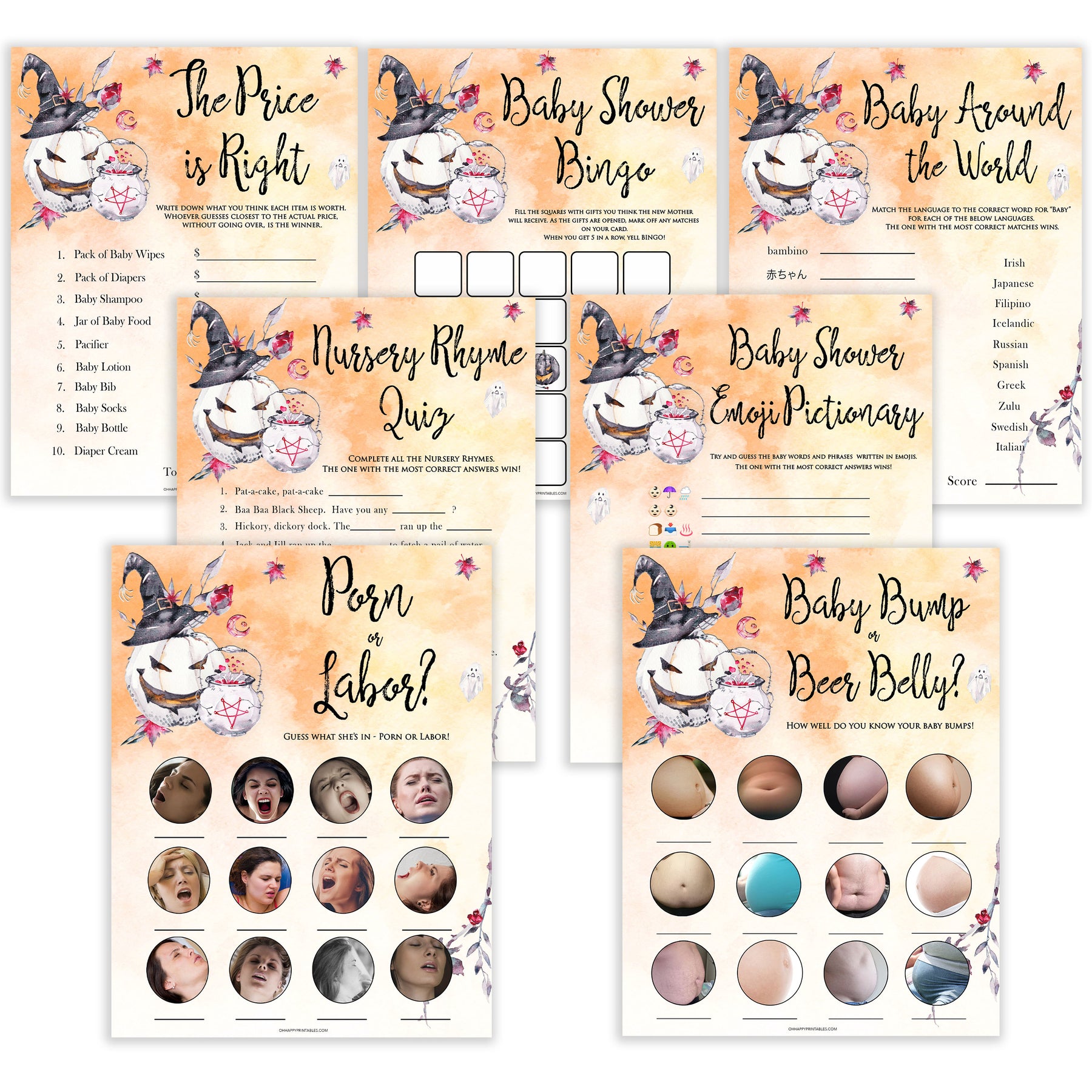 Get all your baby shower party games in one place with this gorgeous baby shower games pack. Featuring 7 of our most popular games, all you need to do is download and print at home.