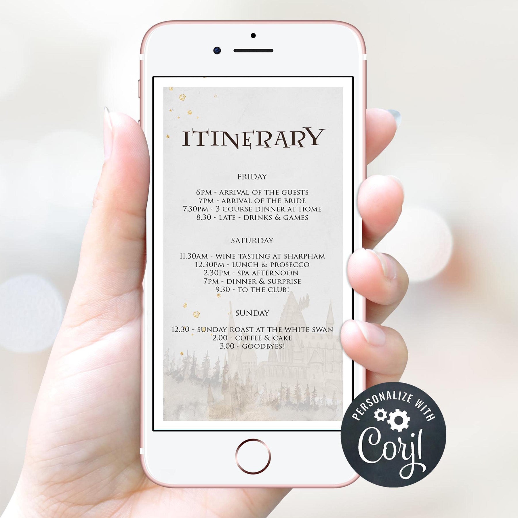 When it comes to sending out invitations for your bridal shower or bachelorette party, paper invitations can be costly and time-consuming. With Messenger and Whatsapp groups however, the digital invite is becoming a popular way to let all your guests know what's happening on the day. It's easy to send out, and even easier to update should your plans change. Simply download to your phone as an image, and send to the group. Let the party begin!