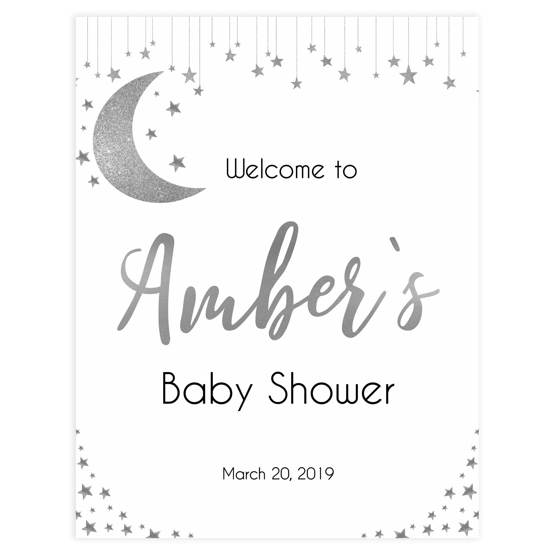 baby shower welcome signs, silver little star baby welcome signs, twinkle little star baby signs, silver baby welcome sign