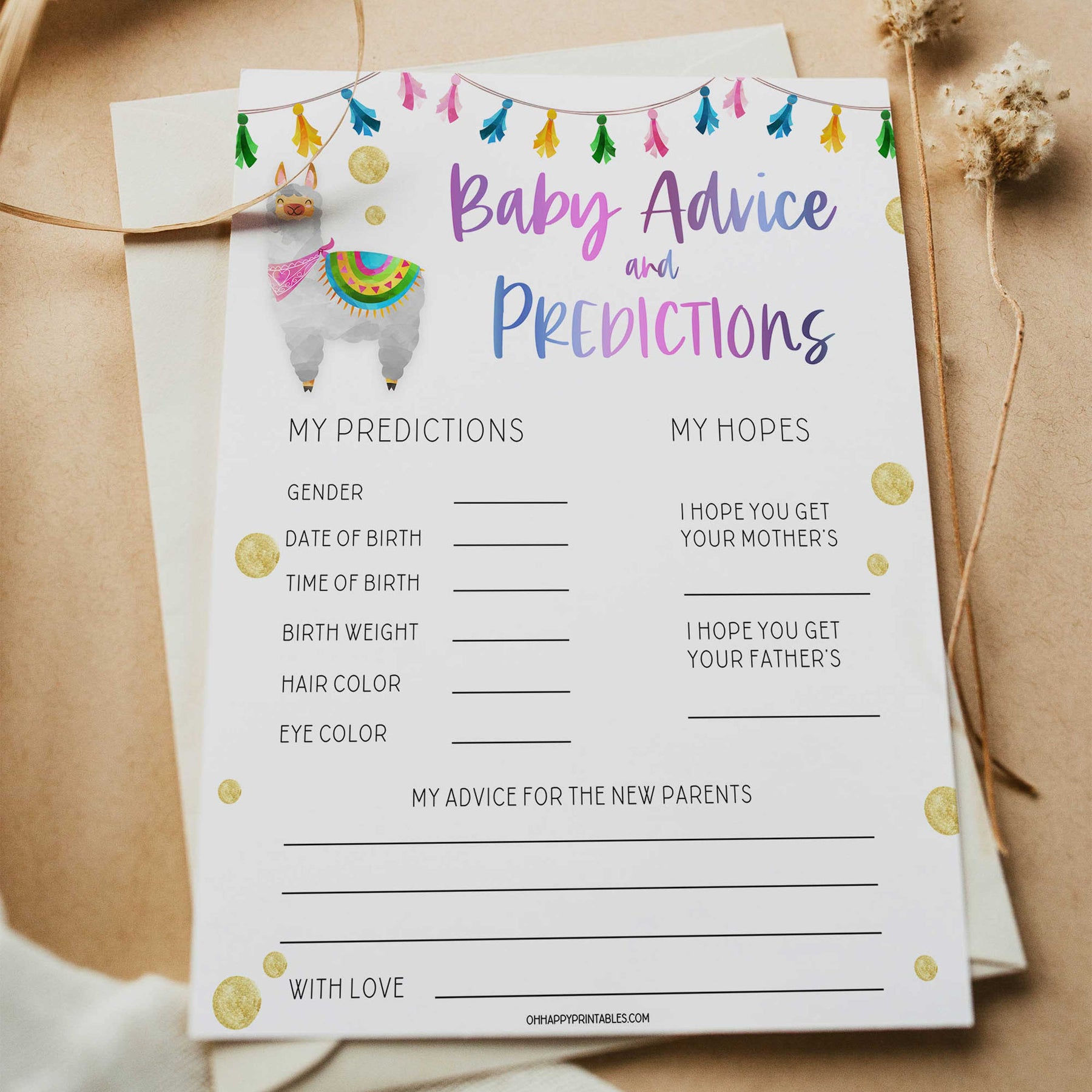 baby advice and predictions keepsake, Printable baby shower games, llama fiesta fun baby games, baby shower games, fun baby shower ideas, top baby shower ideas, Llama fiesta shower baby shower, fiesta baby shower ideas