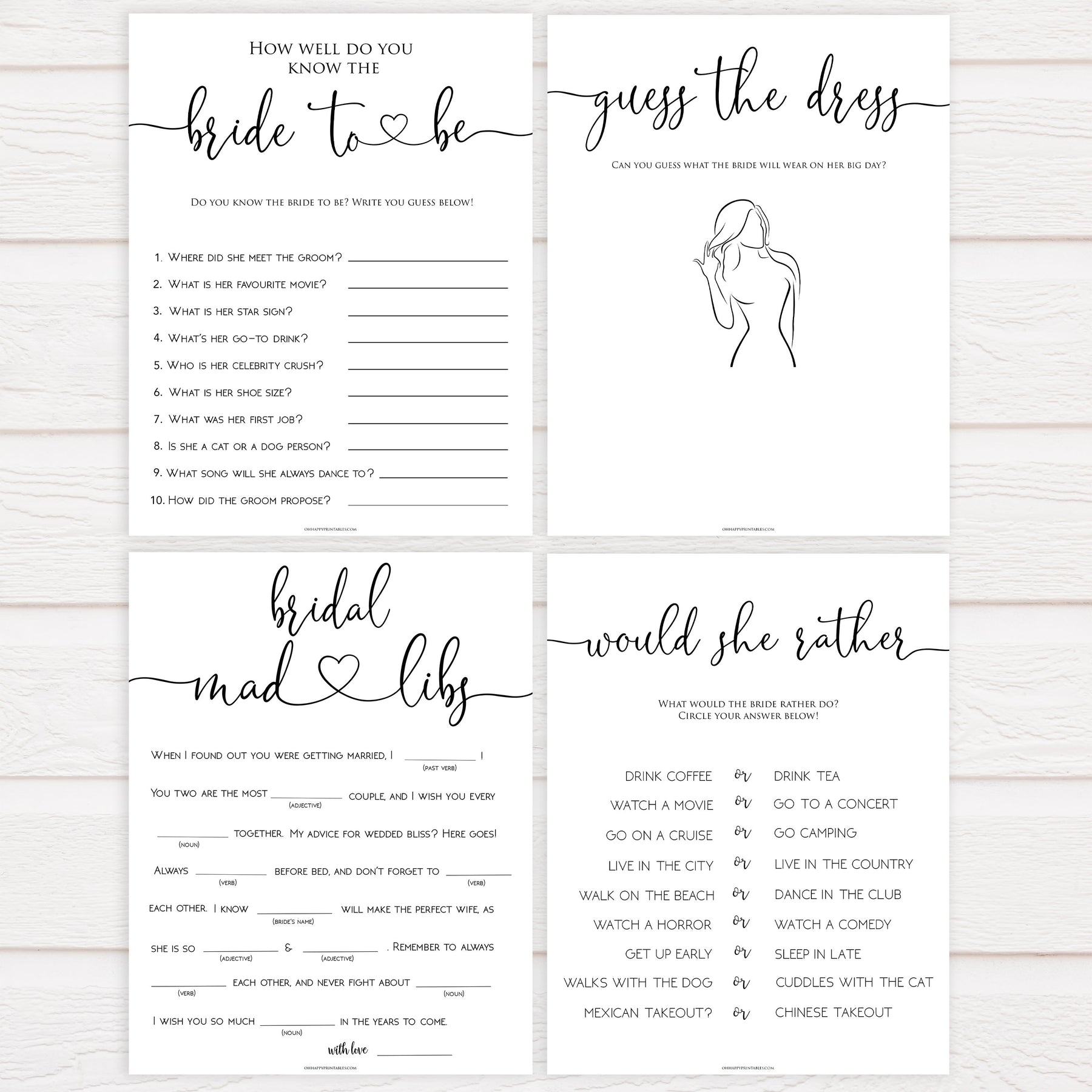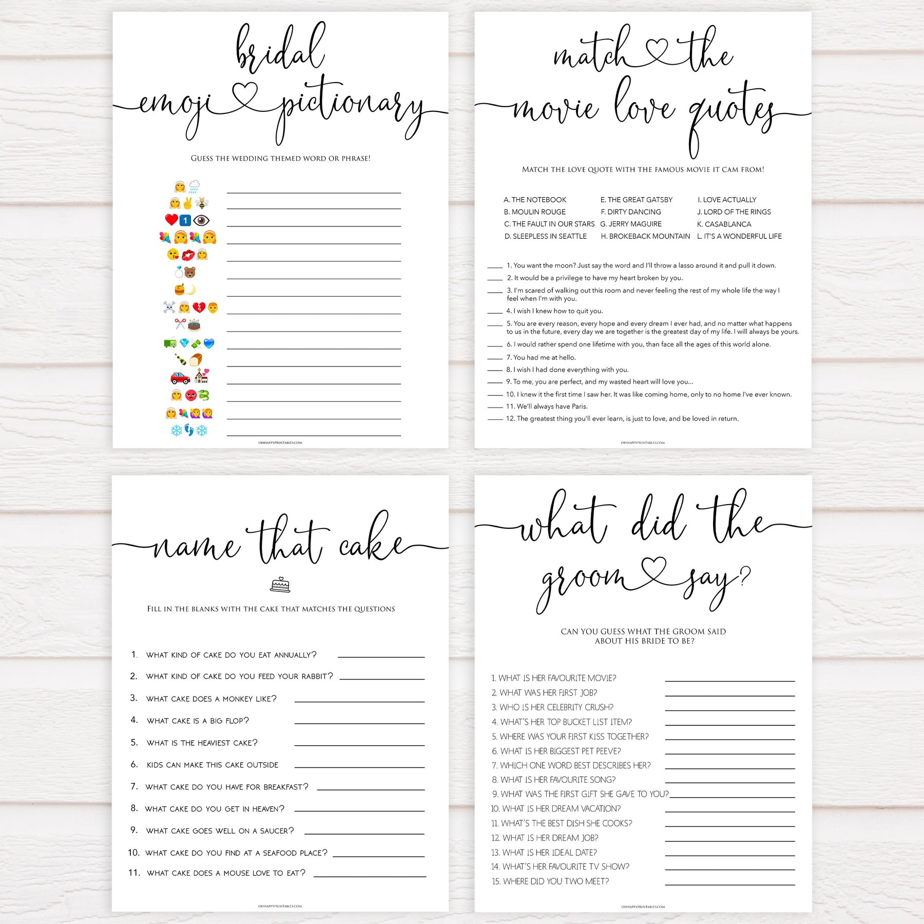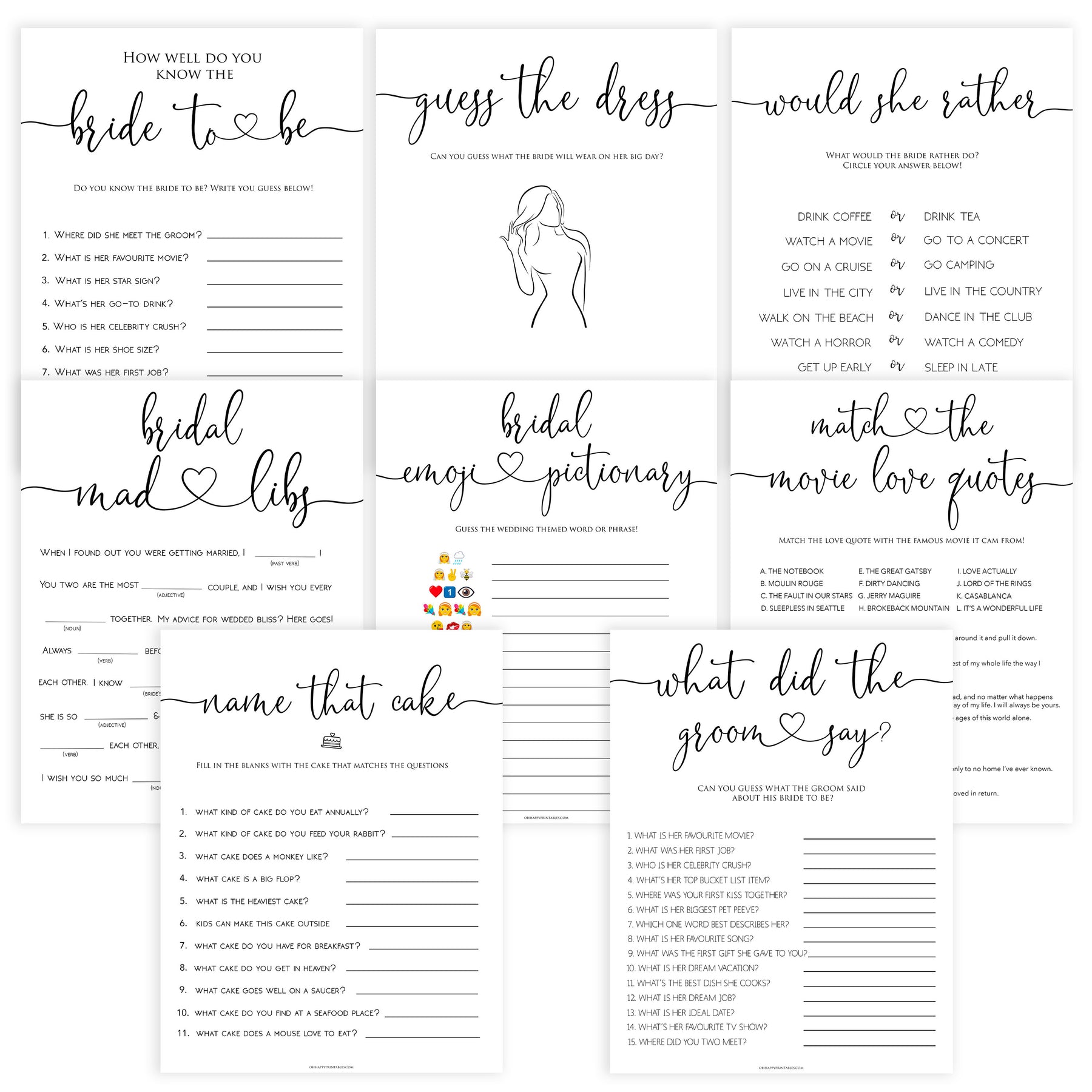 Featuring 8 of our best selling bridal shower games, this 8 pack bundle is a great selection of games all your guests will love. Simply download and print at home, it couldn't be easier.